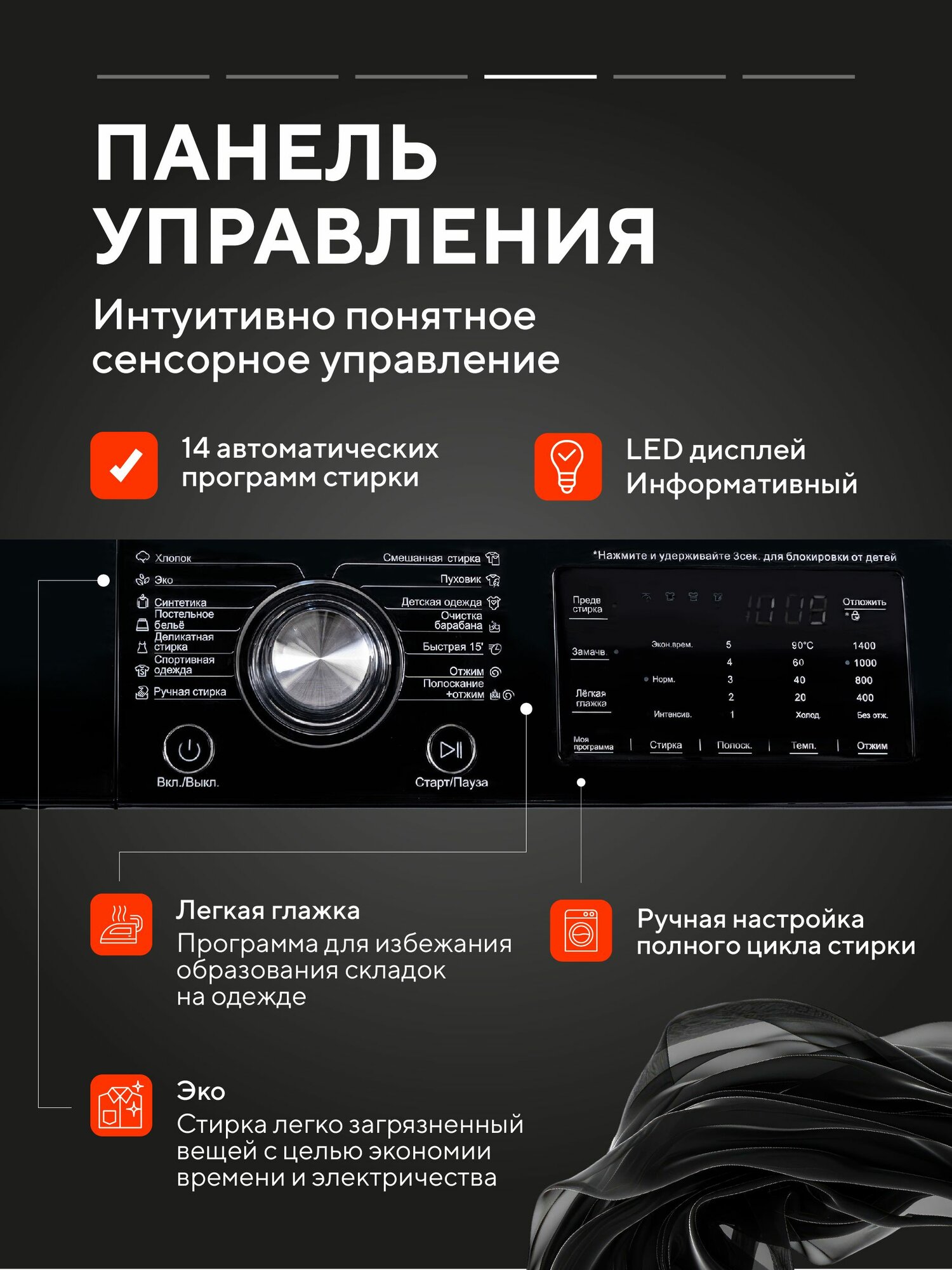 | Комплектация | Стиралка Инструкция по эксплуатации Гарантийный талон Защитные крышки транспортировочных болтов Шланг наливной |