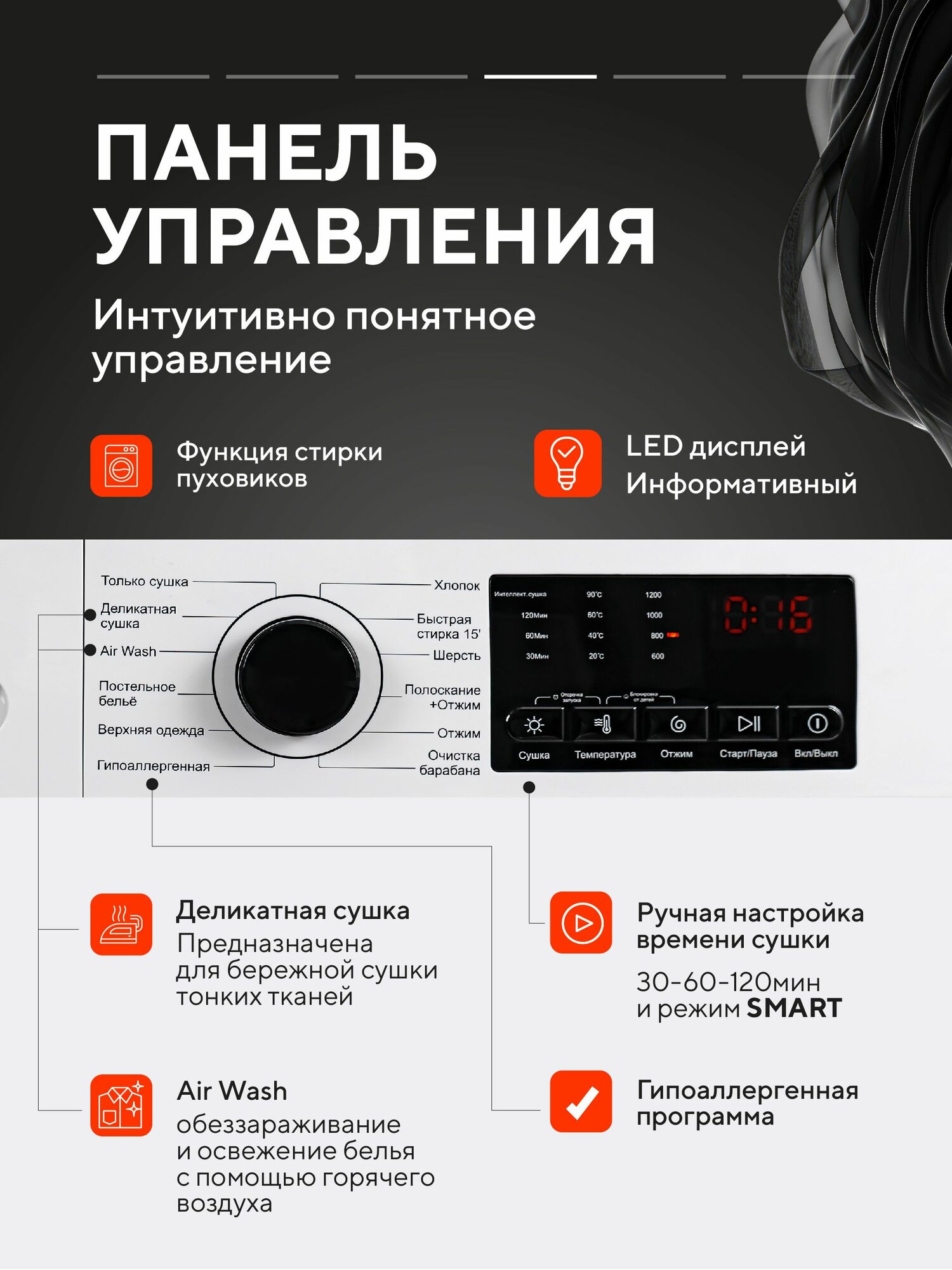 | Дополнительные функции | отложенный старт, очистка барабана |