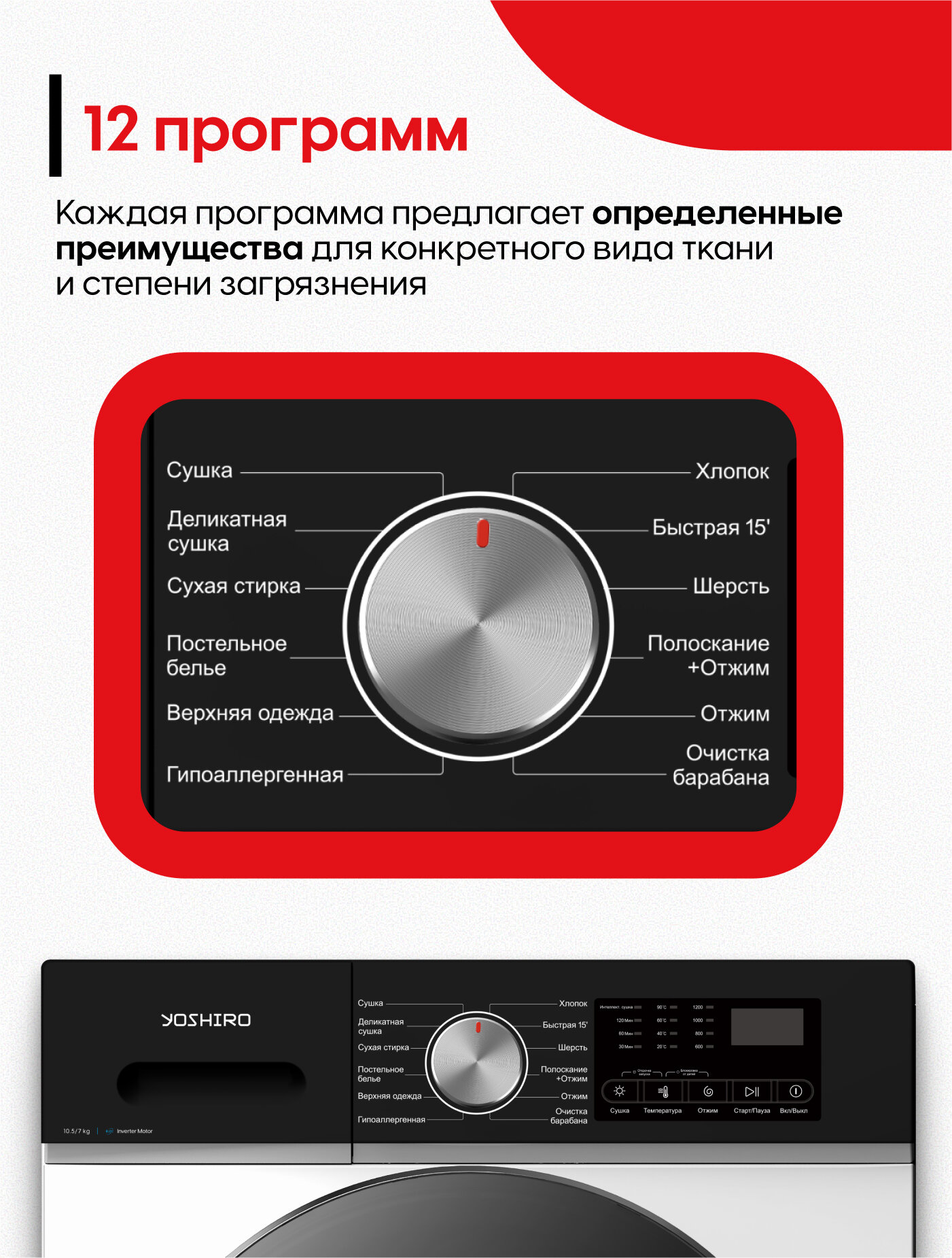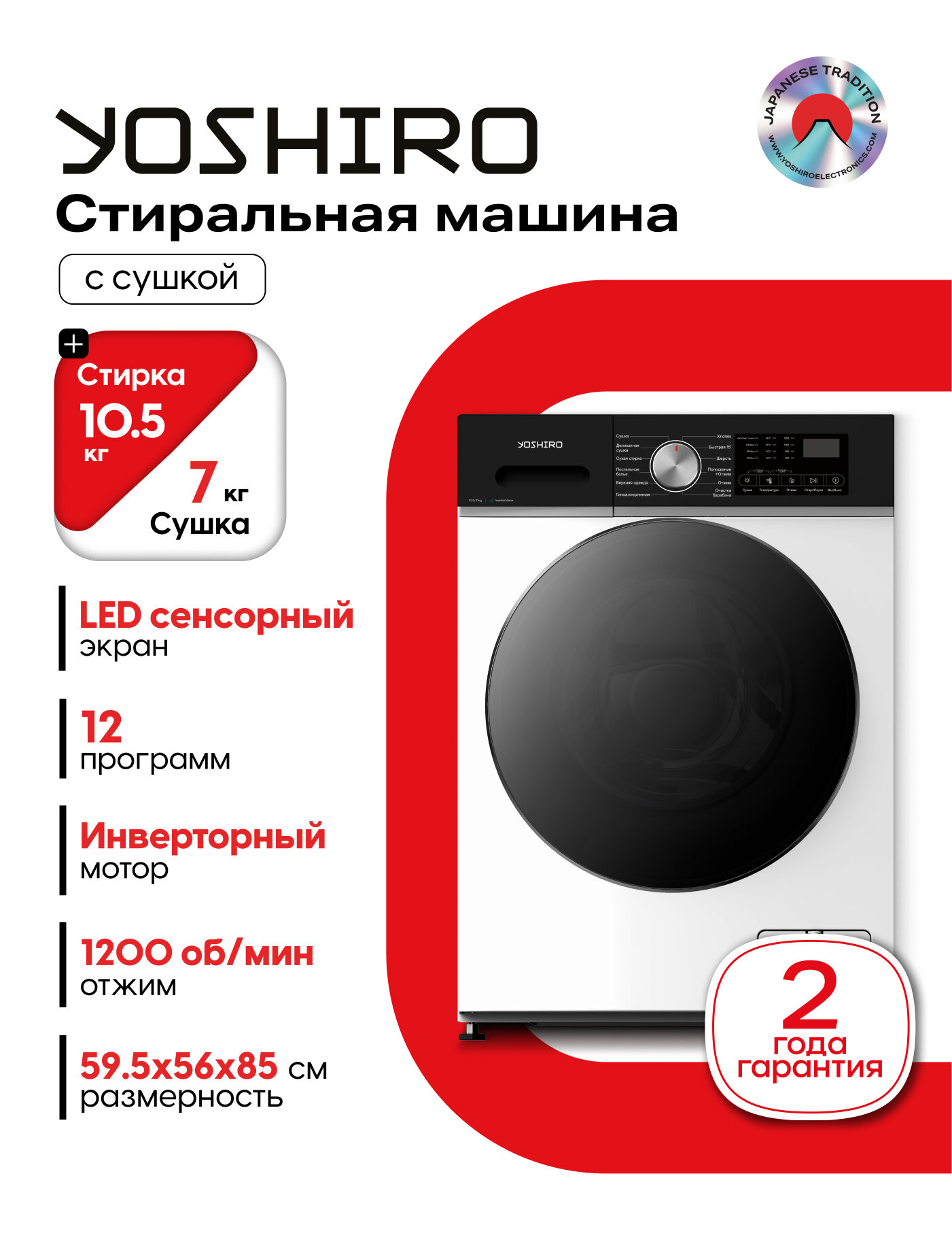 Стиральная машина автомат с сушкой YOSHIRO YWD-F107B20, 10 кг стирка, 7 кг сушка, A+++ , автооткрывание дверцы, белая: сравнение цен, характеристики, фото, актуальное наличие и цены.