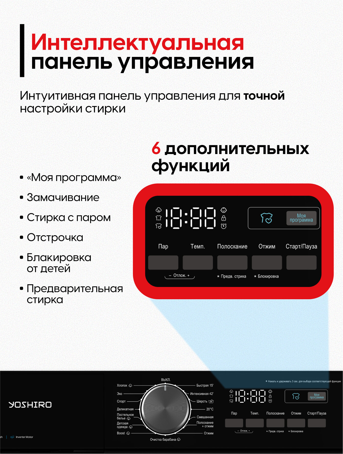 Купить Стиральная машина автомат YOSHIRO YWM-F6B101, 15 программ, сенсорное управление, фронтальная загрузка с доставкой по всей России.