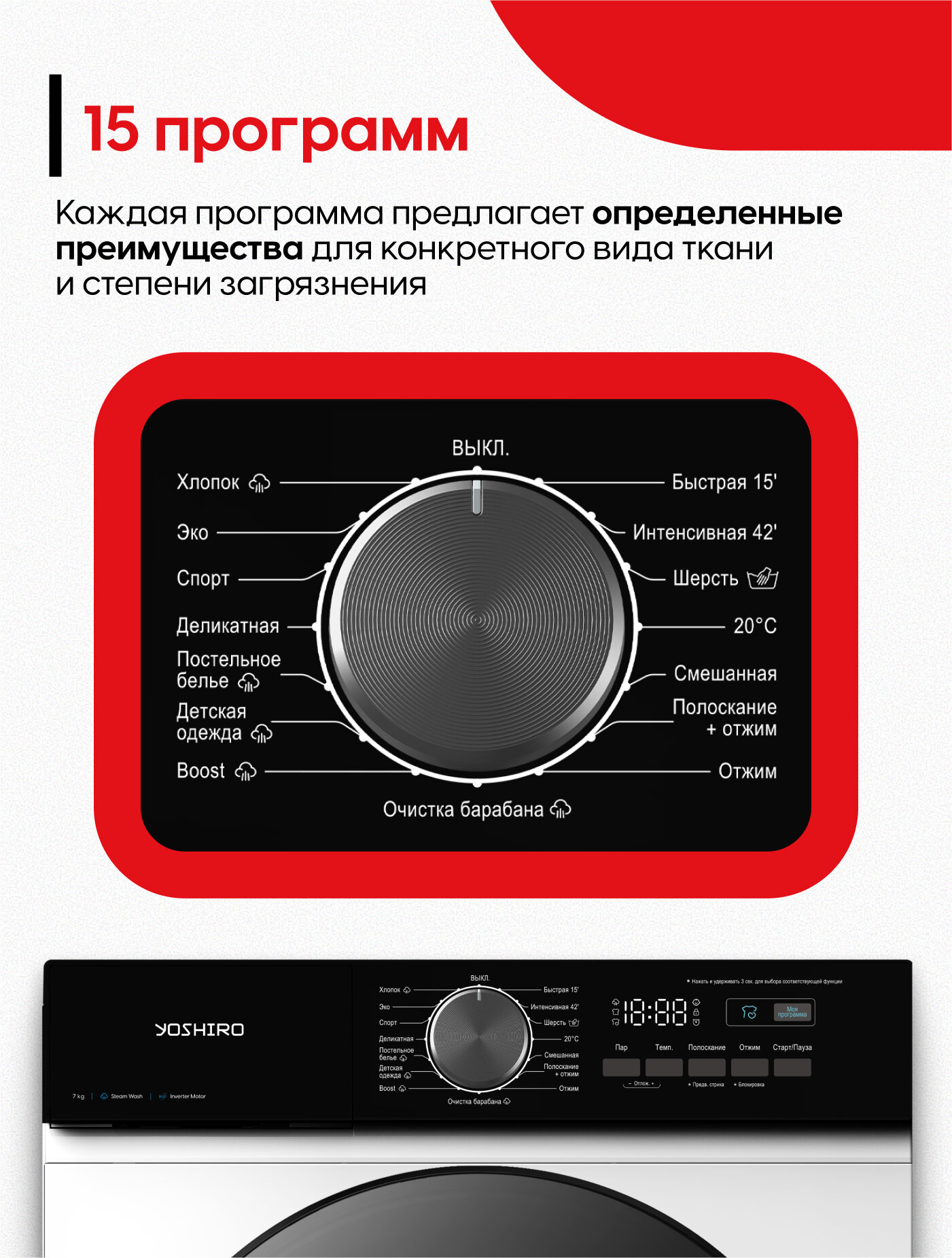 Купить Стиральная машина автомат YOSHIRO YWM-F7B201, 15 программ, фронтальная загрузка, сенсорное управление с доставкой по всей России.