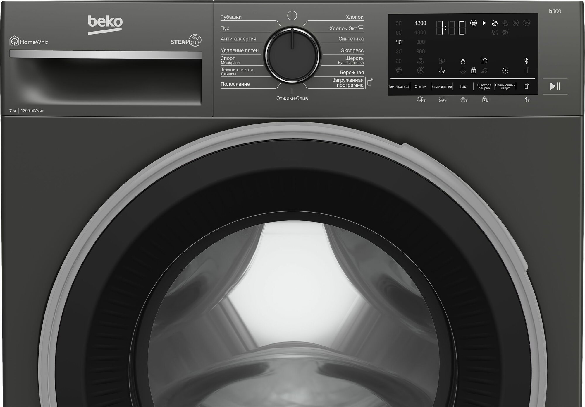 | Программы | быстрая стирка, гипоаллергенная стирка, дополнительное полоскание, ежедневная стирка, замачивание, интенсивная стирка, отжим, отмена отжима, полоскание, предварительная стирка, предотвращение сминания, ручная стирка, стирка верхней одежды, стирка деликатных тканей, стирка детских вещей, стирка джинсов, стирка одеяла, стирка паром, стирка подушек, стирка пуховых вещей, стирка синтетики, стирка смешанных тканей, стирка спортивной обуви, стирка спортивной одежды, стирка хлопка, стирка цветных вещей, стирка черных вещей, стирка шелка, стирка шерсти, удаление пятен, экономичная программа |