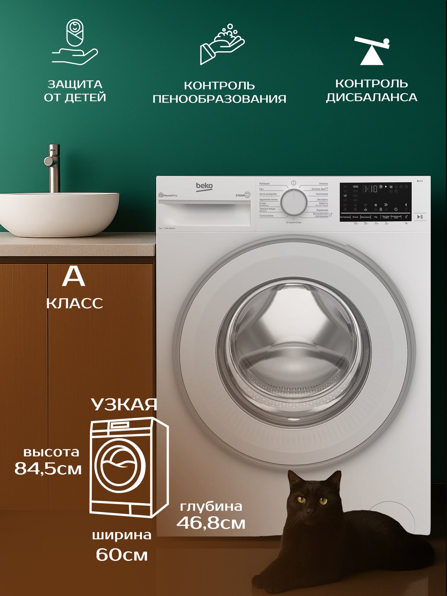 | Программы | быстрая стирка, замачивание, стирка пуховых вещей, стирка синтетики, стирка спортивной одежды, стирка хлопка |