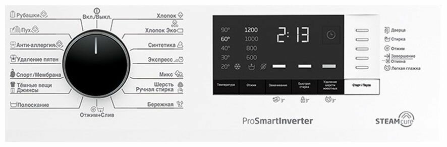 | Программы | быстрая стирка, дополнительное полоскание, замачивание, предварительная стирка, ручная стирка, стирка верхней одежды, стирка деликатных тканей, стирка пуховых вещей, стирка синтетики, стирка спортивной одежды, стирка хлопка, стирка черных вещей, удаление пятен, экономичная программа, Полоскание + отжим, Стирка изделий из джинсовой ткани, Стирка изделий из хлопка + предварительная стирка, Стирка рубашек |