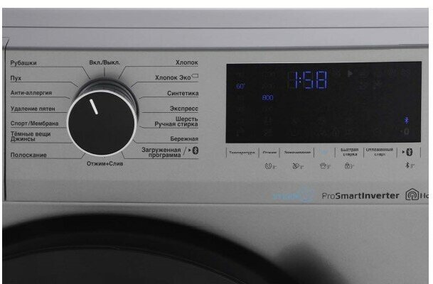 | Программы | стирка смешанных тканей, стирка пуховых вещей, экономичная программа, стирка спортивной обуви, ручная стирка, стирка спортивной одежды, дополнительное полоскание, быстрая стирка, стирка детских вещей, стирка синтетики, отмена отжима, стирка деликатных тканей, интенсивная стирка, стирка черных вещей, стирка хлопка, стирка джинсов, стирка шелка, стирка шерсти, ежедневная стирка, замачивание, предварительная стирка, удаление пятен, стирка верхней одежды, отжим, полоскание, гипоаллергенная стирка, стирка цветных вещей |