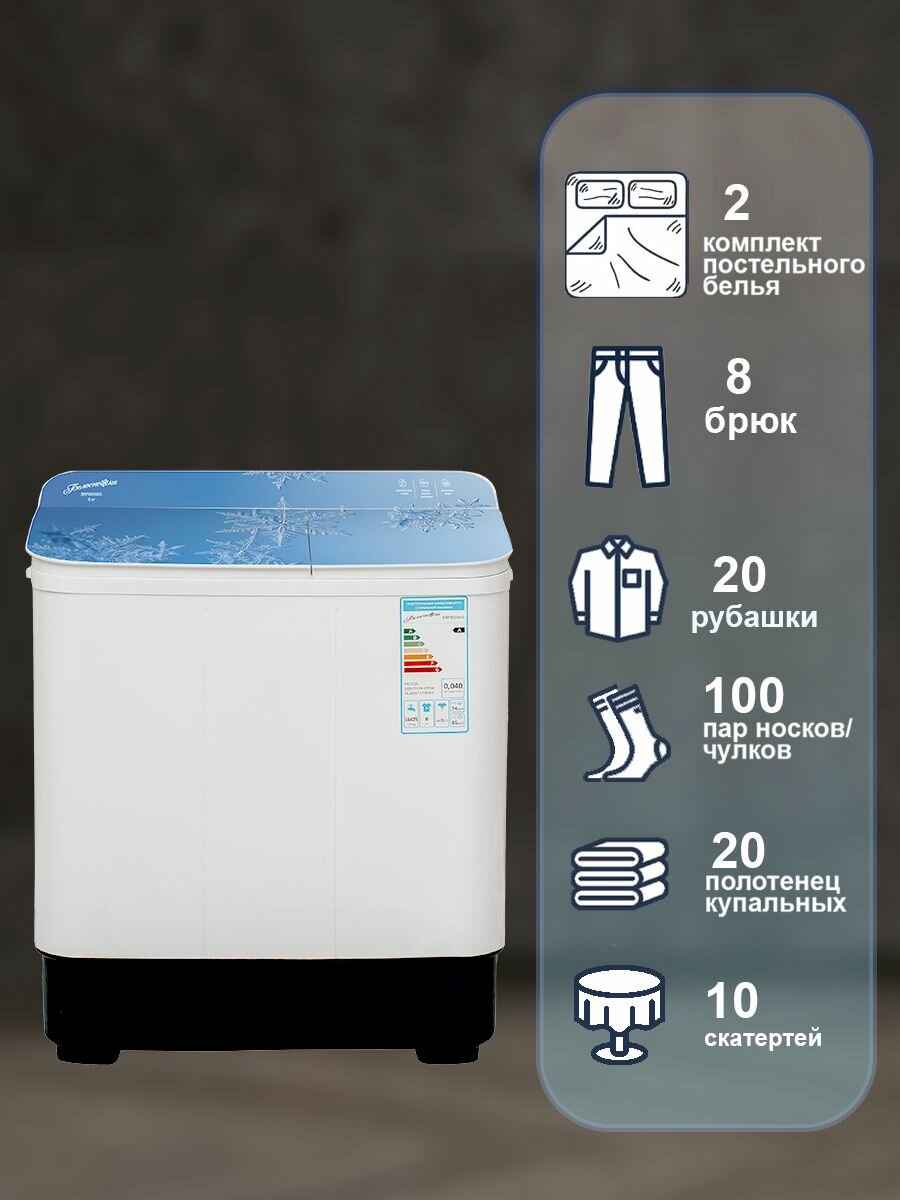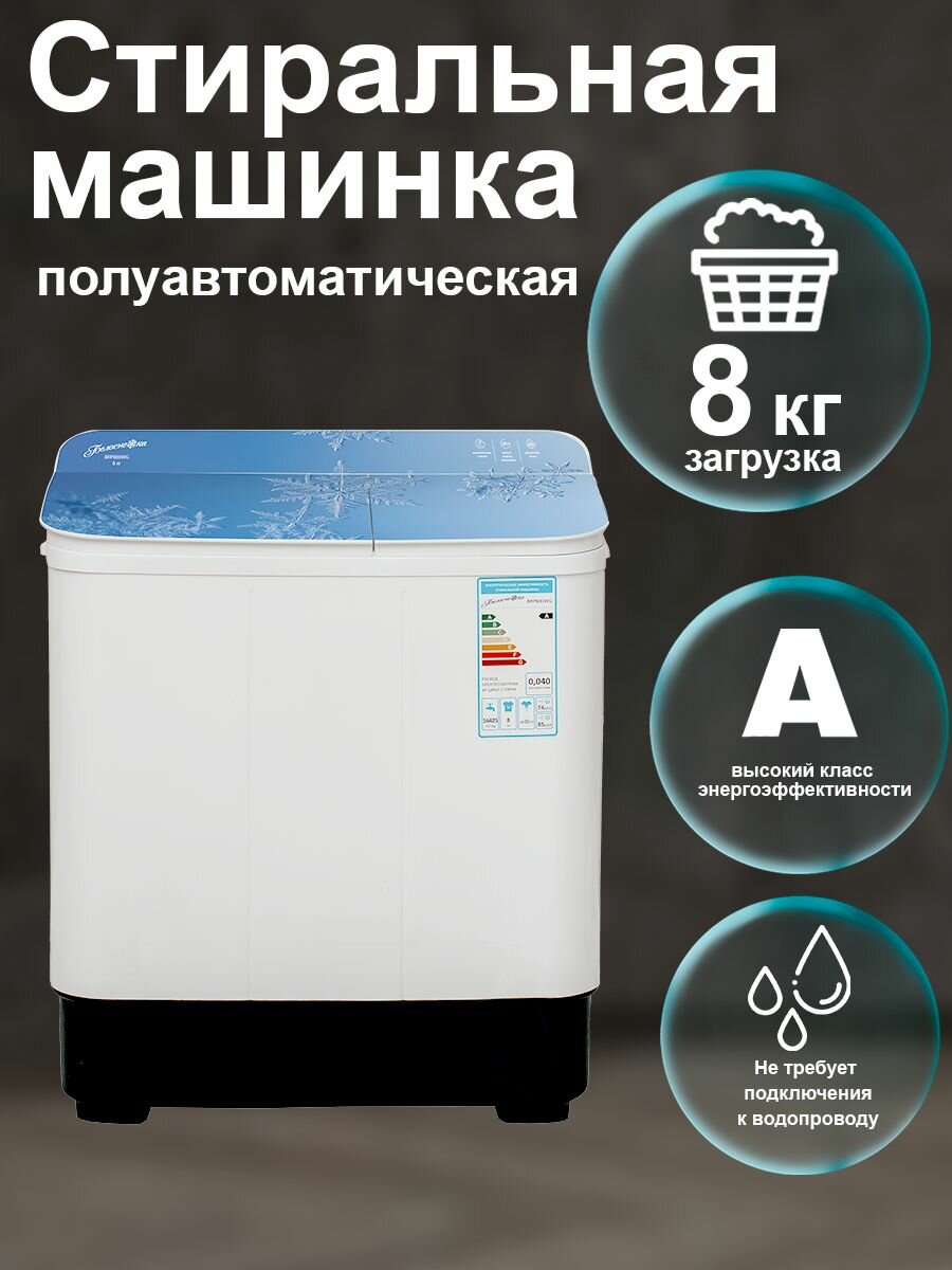 Стиральная машина Белоснежка BRP800WG-01, 2 бака, с отжимом, с ценрифугой, активаторная, 8 кг, белая, синяя.: сравнение цен, характеристики, фото, актуальное наличие и цены.