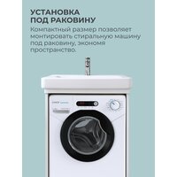 Особенностью конструкции стиральной машины является возможность установки под раковину. Это позволяет сэкономить пространство в ванной комнате и сделать процесс стирки более удобным.