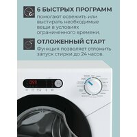 выбор скорости отжима, выбор температуры стирки, интеллектуальное управление стиркой, контроль баланса, контроль за уровнем пены, отложенный старт, сигнал окончания стирки