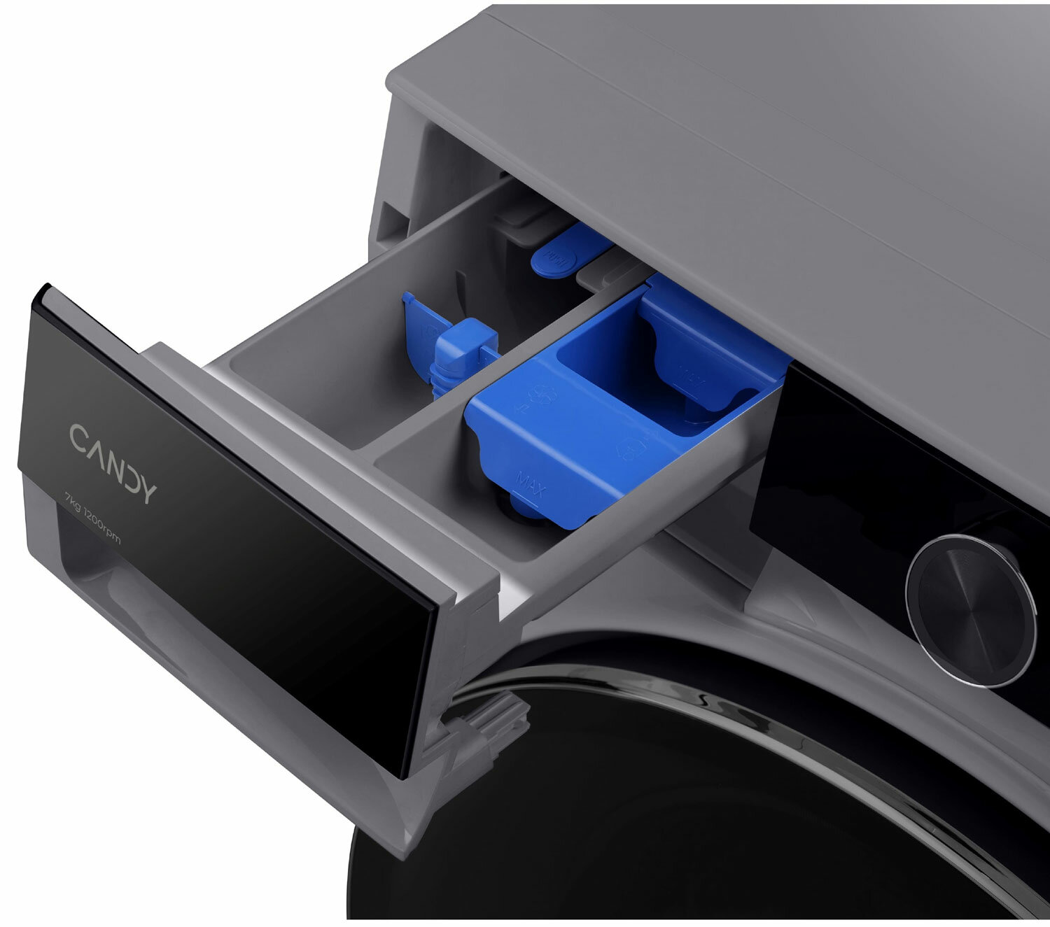 Candy UltimO бережно заботится о вещах благодаря ведущим технологиям. Бесшумная стиральная машина со стильным дизайном предусматривает 13 программ стирки и широкий набор дополнительных функций. Экономит время, воду и электроэнергию. Инверторный мотор BLDC — тихий, надежный и экономный Бесщёточный инверторный мотор вращается под воздействием электромагнитного поля. Скорость, на которой работает Candy UltimO, далека от зоны резонанса и имеет более короткую амплитуду. Уровень шумового давления при стирке составляет всего 49 дБ (А), при отжиме 72 дБ (А). Функциональность и компактность Candy UltimO имеет узкий корпус, глубина которого составляет 42,1 см. Компактные размеры позволяют установить машину в небольших по площади помещениях. Барабан SoftMotion Drum из нержавеющей стали — деликатное отстирывание Внутренняя поверхность стирального барабана выполнена в форме подушечек, обеспечивающие бережную и эффективную стирку. Увеличенные диаметры барабана и загрузочного люка Благодаря увеличенному до 52,5 см диаметру барабана Candy UltimO обладает больше вместительностью по сравнению с машинами со стандартным диаметром барабана 49,5 см. Что способствует повышению эффективности стирки и бережному отношению к тканям. Для комфортной загрузки/выгрузки белья в UltimO предусмотрен большой загрузочный люк диаметром 36 см. Информативный TFT-дисплей и интуитивно понятное сенсорное управление Candy UltimO проста в управлении — информация выводится на сенсорный дисплей. Достаточно выбрать одну из 13 программ стирки: для цветных вещей, хлопка, синтетики, пуховых вещей, детской одежды, деликатной, ручной стирки, спорт, ежедневная, самоочистка. Программа «Отжим» регулируется в зависимости от типа тканей от 0 до 1200 об/мин. Два быстрых режима «Эко 15 мин» и «Быстрая стирка 39 мин» предназначены для того, чтобы освежить одежду, например, после занятия спортом или при незначительных загрязнениях. Широкий набор дополнительных функций Можно выбрать температуру, добавить предварительную стирку, дополнительное полоскание, запрограммировать отложенный старт. Или воспользоваться другими опциями. Экономичная стирка экономит электроэнергию. Легкая глажка уменьшает образование складок, предотвращает появление неприятных запахов. Интенсивная стирка справится с очень грязной одеждой. Ночной режим для бесшумной стирки и препятствует сминанию вещей. Пар: Candy UltimO дезинфицирует и разглаживает любую одежду — даже ту, которую нельзя стирать в стиральной машине, обрабатывая ее паром при температуре 60 или 90℃. Это уничтожает бактерии, клещей удаляет запахи и расправляет одежду. Гигиена+ — на этом режиме UltimO тщательно отстирывает одежду и устраняет аллергены. Дозагрузка белья во время стирки Нужно добавить белье при уже запущенном цикле стирки? Легко! Для этого достаточно нажать на паузу и подождать, пока дверца разблокируется. После этого ее можно открыть, добавить белье в барабан и продолжить цикл стирки, сняв программу с паузы. JetClean System: без пены и грязи Внутреннее стекло и манжета люка в UltimO всегда остаются чистыми. Они автоматически промываются направленными струями воды из специальных форсунок в барабане, которые входят в систему JetClean System. Антибактериальная обработка CleanCare+: отличная защита от бактерий Антибактериальная обработка манжеты и лотка на 99,99% устраняет микробы и бактерии и предот