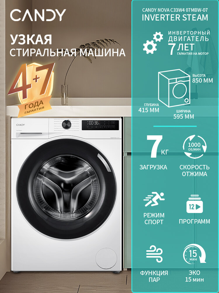 | Дополнительные функции | выбор скорости отжима, выбор температуры стирки, контроль баланса, контроль за уровнем пены, отложенный старт, очистка барабана, сигнал окончания стирки |