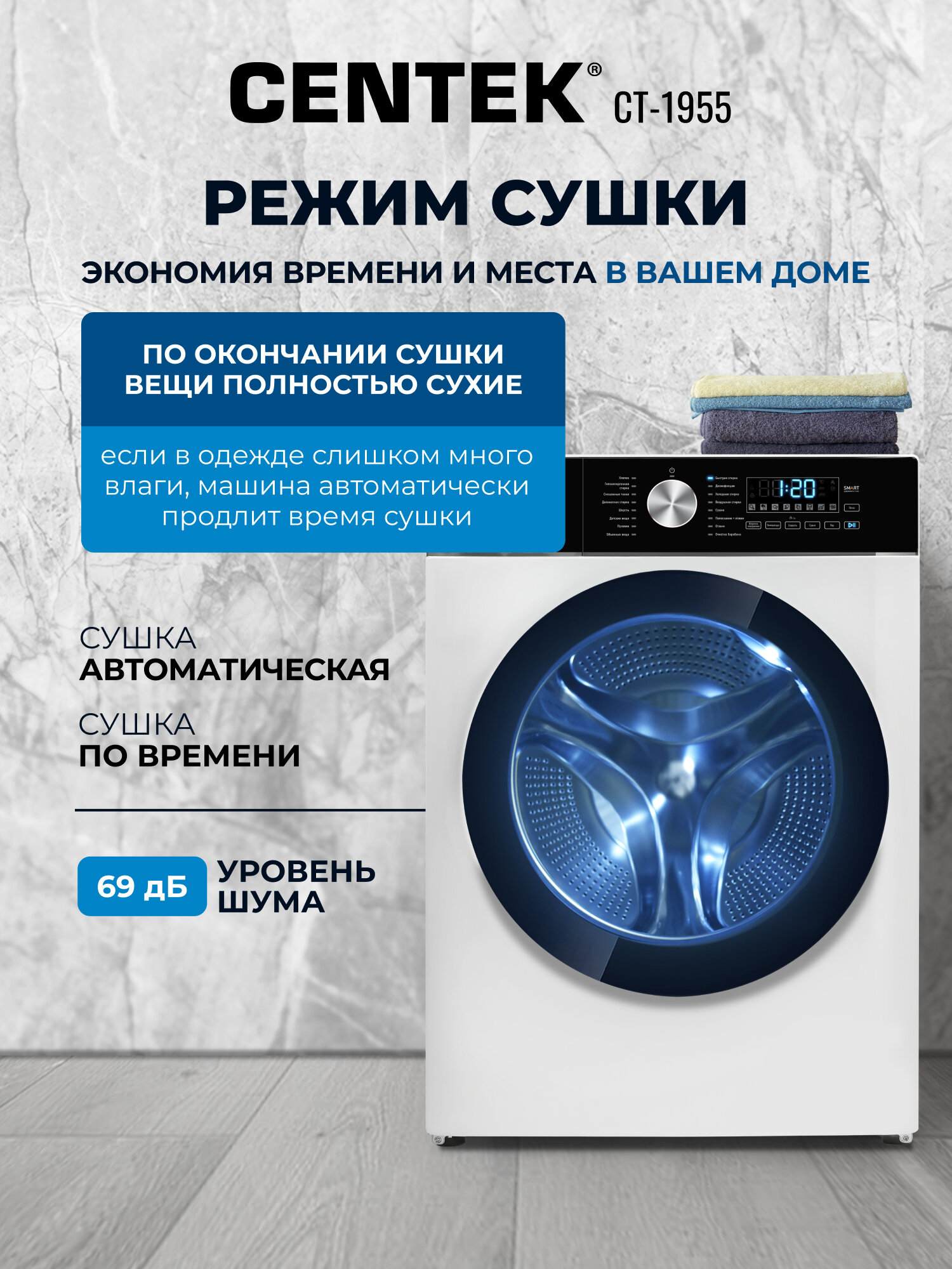 Купить Стиральная машина с сушкой CENTEK CT-1955: автомат/инверторный двигатель/ белая/ узкая/ 8 кг/5кг/ 17 программ/с паром с доставкой по всей России. Стиральная машина с сушкой CENTEK CT-1955: автомат/инверторный двигатель/ белая/ узкая/ 8 кг/5кг/ 17 программ/с паром: сравнение цен, характеристики, фото, актуальное наличие и цены.