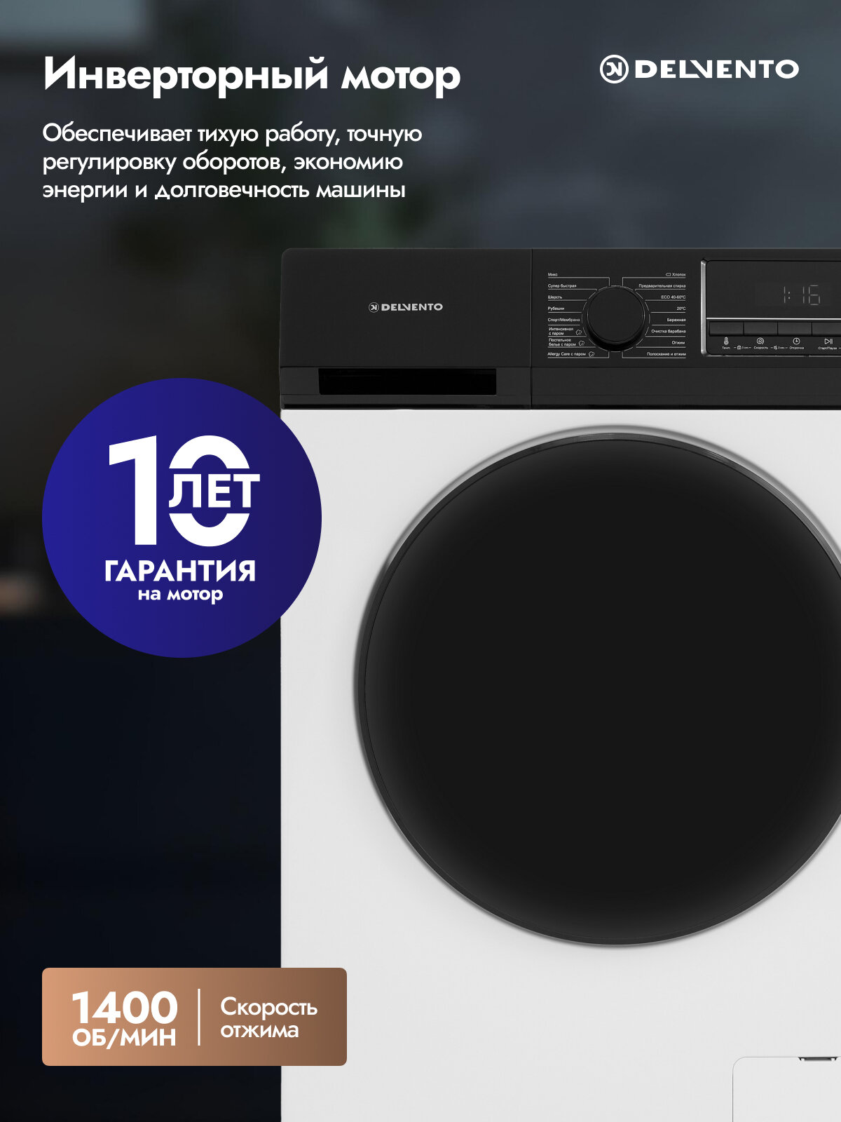 Купить Стиральная машина DELVENTO VHC901 10,5 кг 1400 об. мин 16 программ Материал бака: пластик Инверторный двигатель с доставкой по всей России.