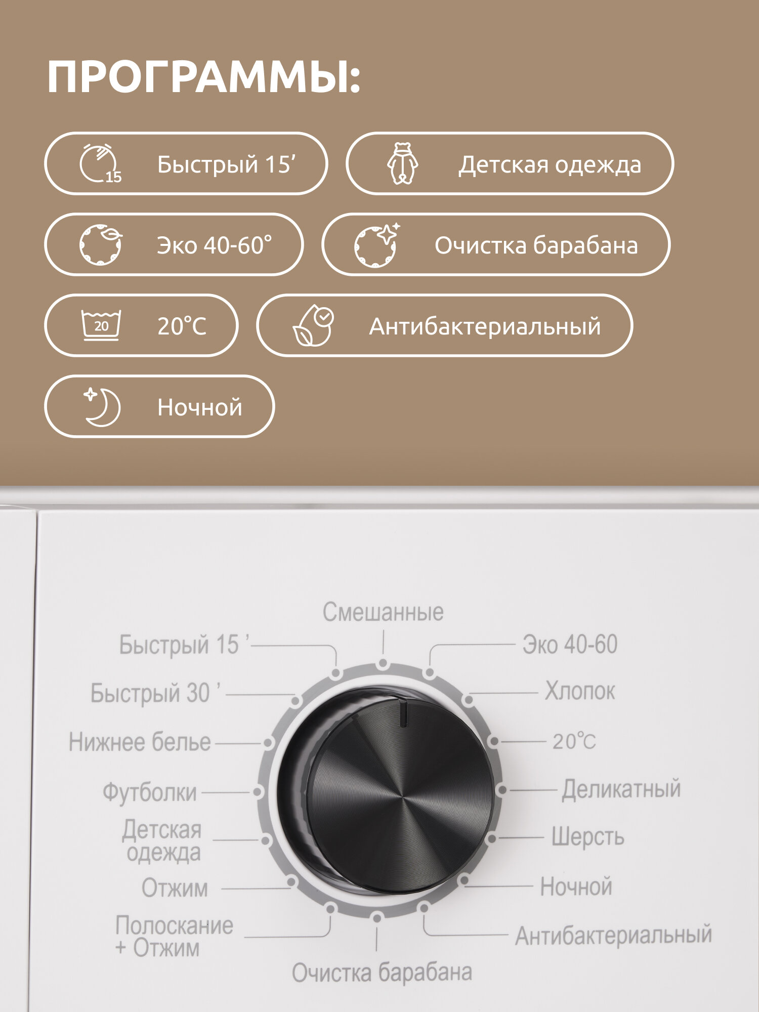 | Программы | быстрая стирка, ночной режим, отжим, полоскание, стирка деликатных тканей, стирка детских вещей, стирка смешанных тканей, стирка хлопка, стирка шерсти, экономичная программа |