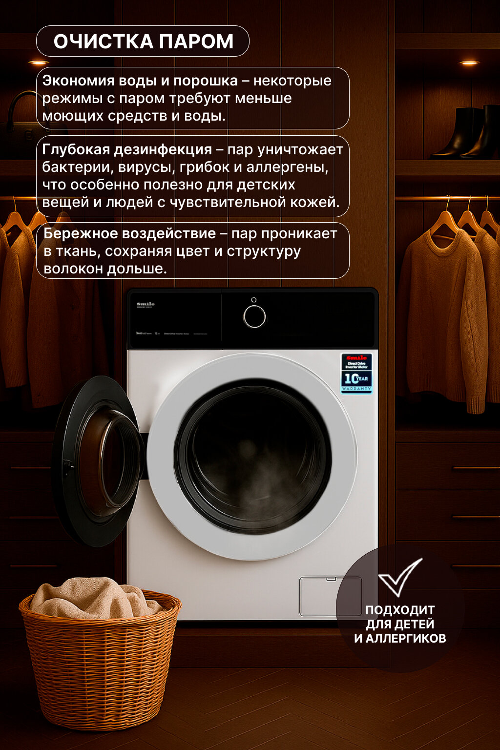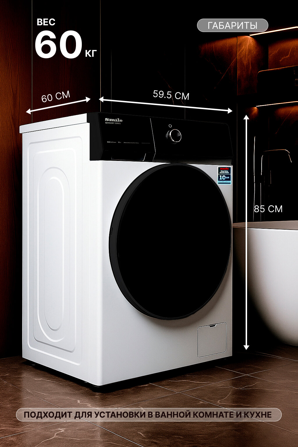 Стиральная машина фронтальная SMILE SWMSW10W1400 белый/черный (DD, пар, инвертор): сравнение цен, характеристики, фото, актуальное наличие и цены.