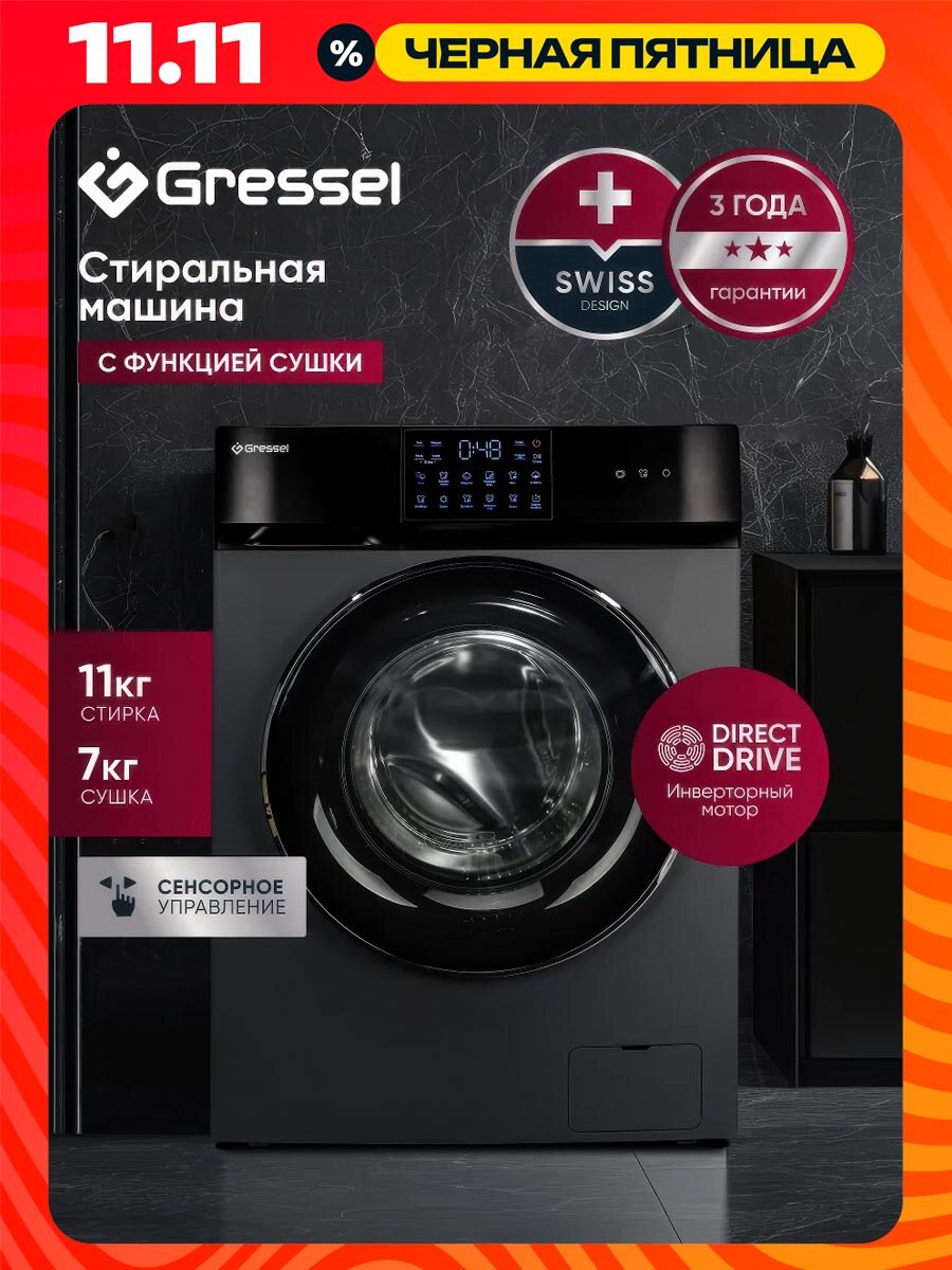 Стиральная машина Gressel UBS602 с сушкой - это современное и функциональное устройство, которое сочетает в себе стирку и сушку белья.