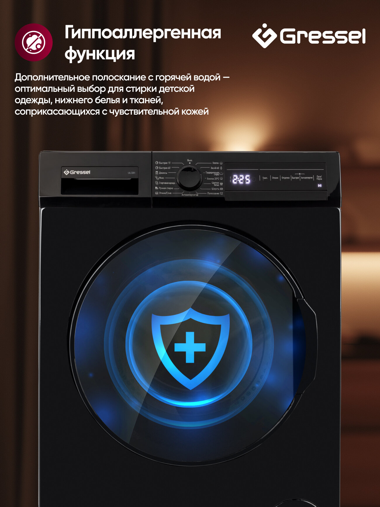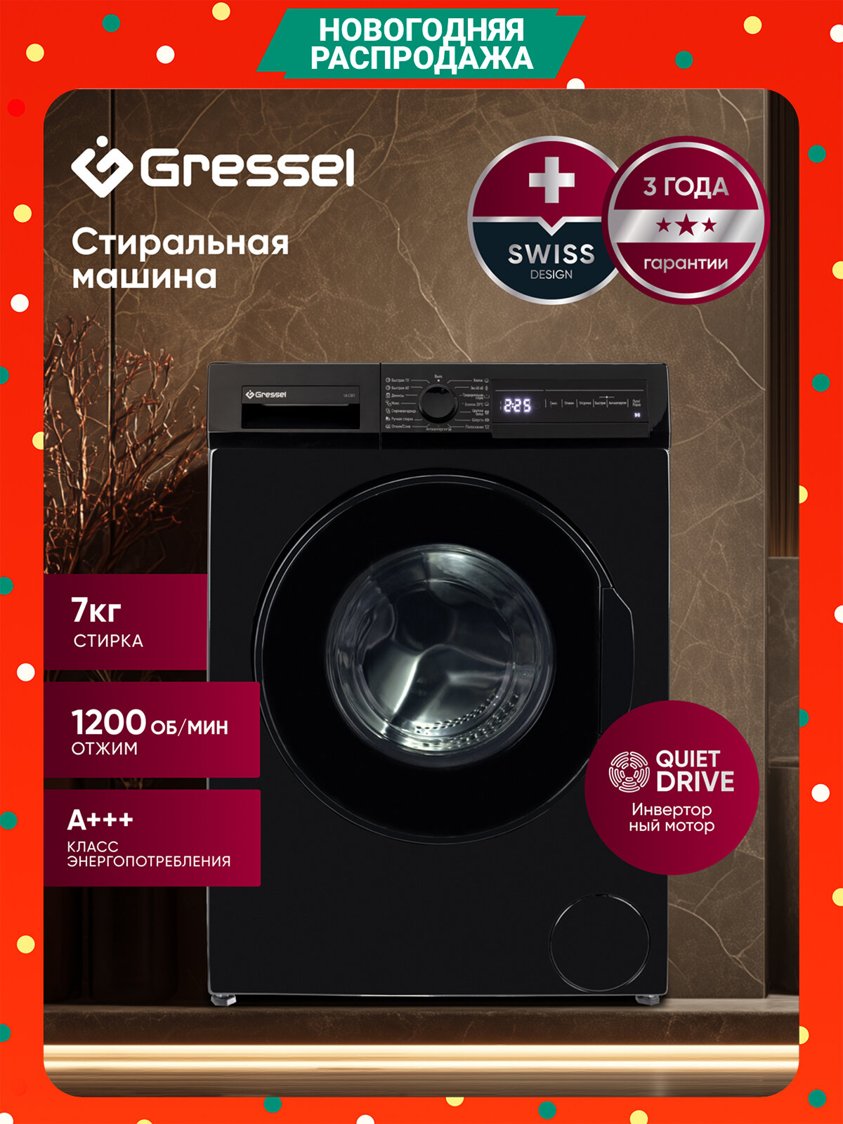 Стиральная машина Gressel ULC201 7 кг представляет собой современное и функциональное устройство для стирки белья. Она оснащена BLDC инверторным мотором, обеспечивающим высокую эффективность и экономичность. Максимальная скорость отжима составляет 1200 об/мин, что позволяет быстро и качественно отжимать белье, сохраняя его форму и структуру.