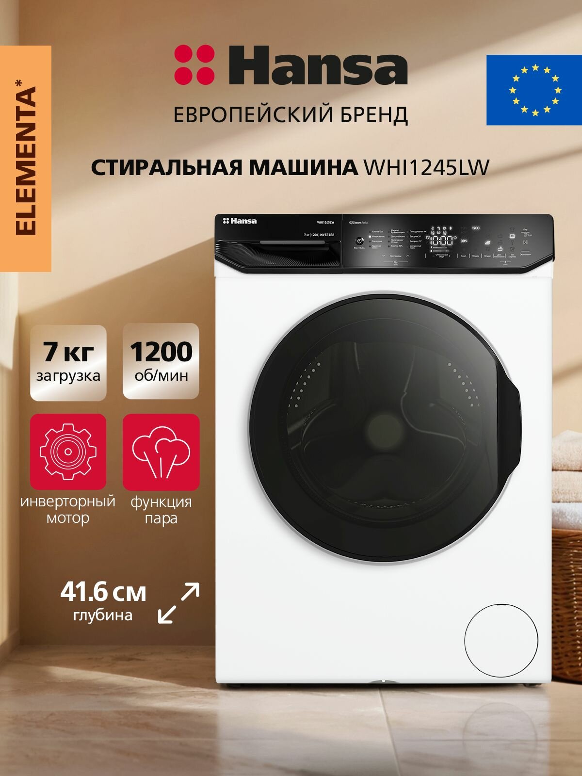 | Программы | быстрая стирка, ежедневная стирка, интенсивная стирка, стирка детских вещей, стирка хлопка, экономичная программа, Полоскание + отжим, Слив, Цветное белье |