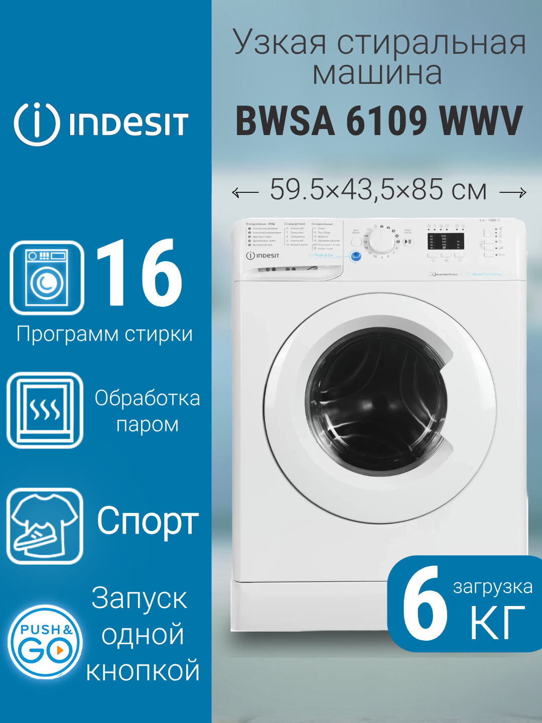 Купить Стиральная машина Indesit BWSA 6109 WWV, фронтальная загрузка, 6 кг с доставкой по всей России. Стиральная машина Indesit BWSA 6109 WWV, фронтальная загрузка, 6 кг: сравнение цен, характеристики, фото, актуальное наличие и цены.
