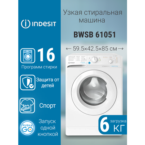 Купить Стиральная машина Indesit BWSB 61051 WWV, стирка 6 кг, отжим 1000 об/мин с доставкой по всей России. Стиральная машина Indesit BWSB 61051 WWV, стирка 6 кг, отжим 1000 об/мин: сравнение цен, характеристики, фото, актуальное наличие и цены.