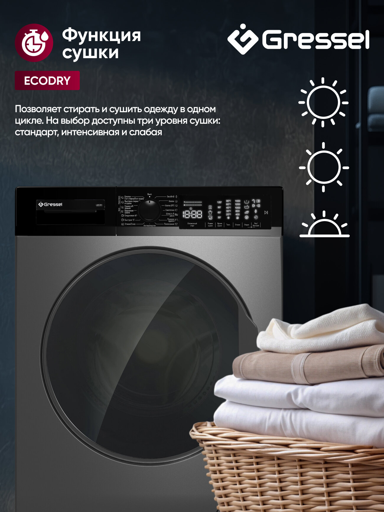 Купить Стиральная машина инвертор Gressel UBS701 с сушкой 8кг/5кг Standart с доставкой по всей России.
