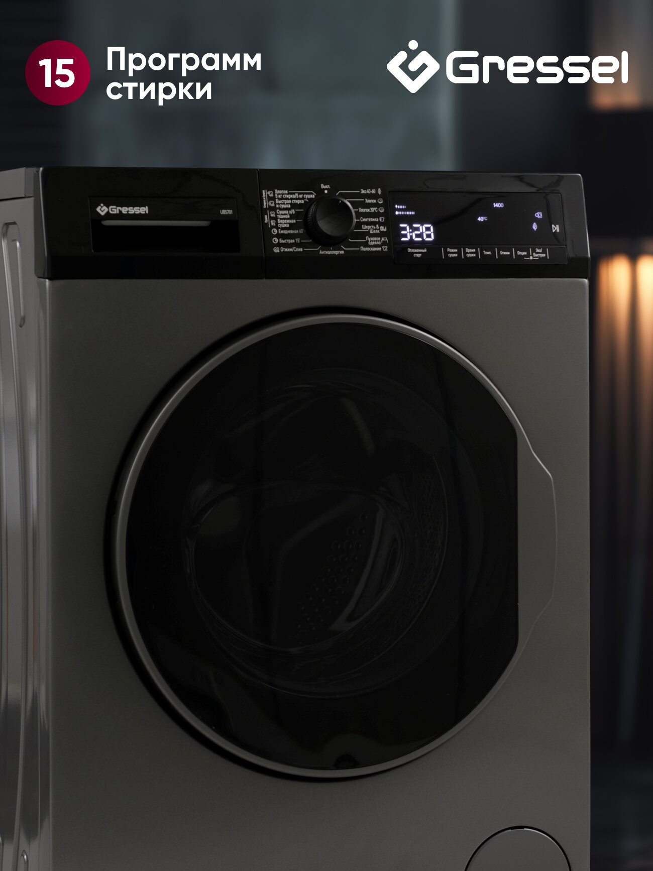 Стиральная машина инвертор Gressel UBS701 с сушкой 8кг/5кг Standart