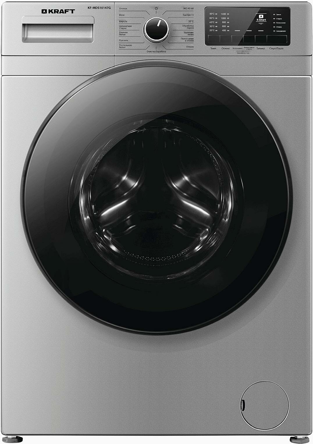 KRAFT KF-MDS10147G — стиральная машинка для быстрой и качественной очистки одежды от грязи, пыли, плесени и стойких жирных пятен. Устройство получило маркировку A+++ из-за экономного потребления электричества во время работы.