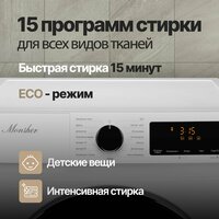 | Программы | быстрая стирка, гипоаллергенная стирка, дополнительное полоскание, интенсивная стирка, отжим, стирка деликатных тканей, стирка детских вещей, стирка джинсов, стирка смешанных тканей, стирка хлопка, стирка шерсти, экономичная программа |