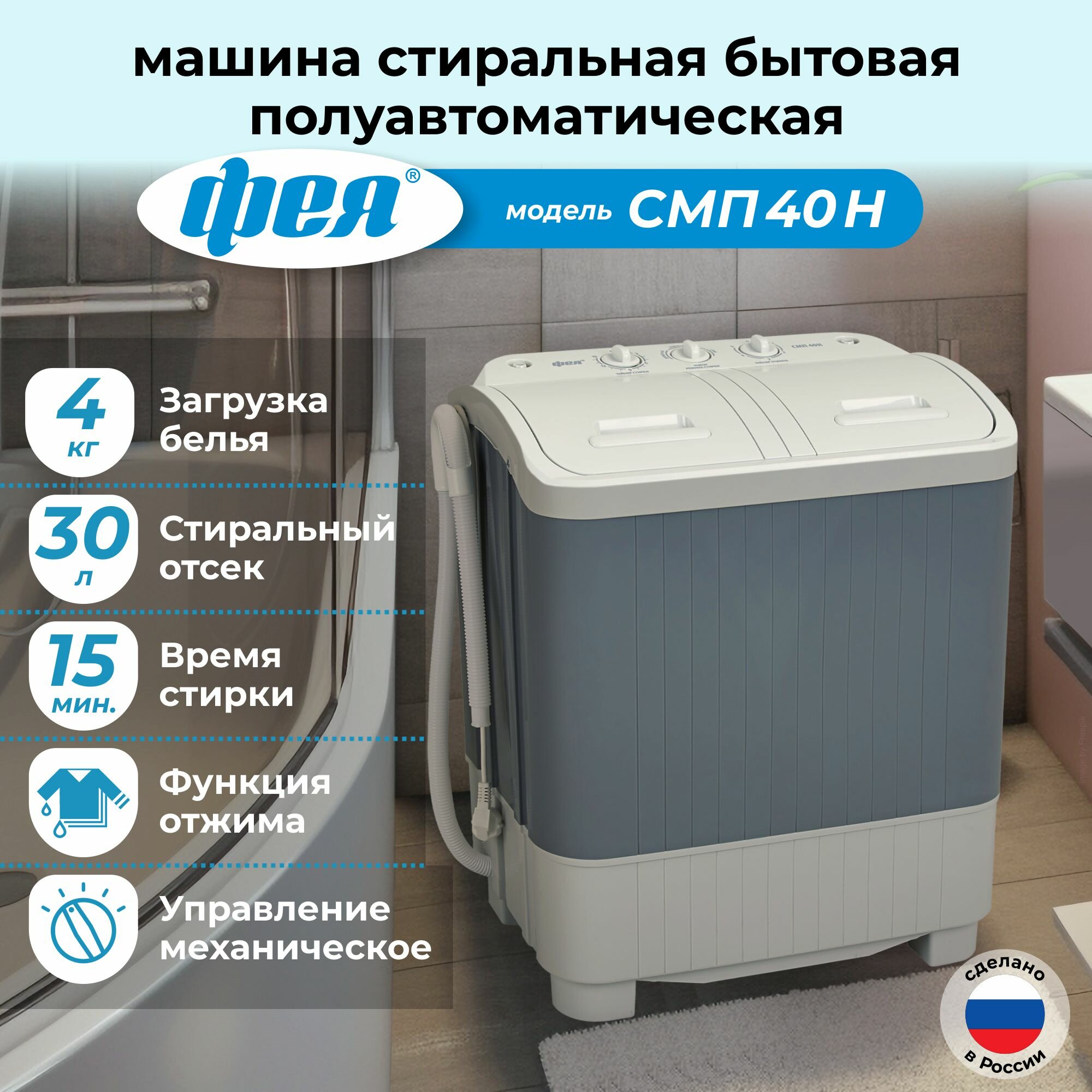 Купить Стиральная машина полуавтоматическая «Фея» СМП 40 Н светло серый-серый с доставкой по всей России. Стиральная машина полуавтоматическая «Фея» СМП 40 Н светло серый-серый: сравнение цен, характеристики, фото, актуальное наличие и цены.