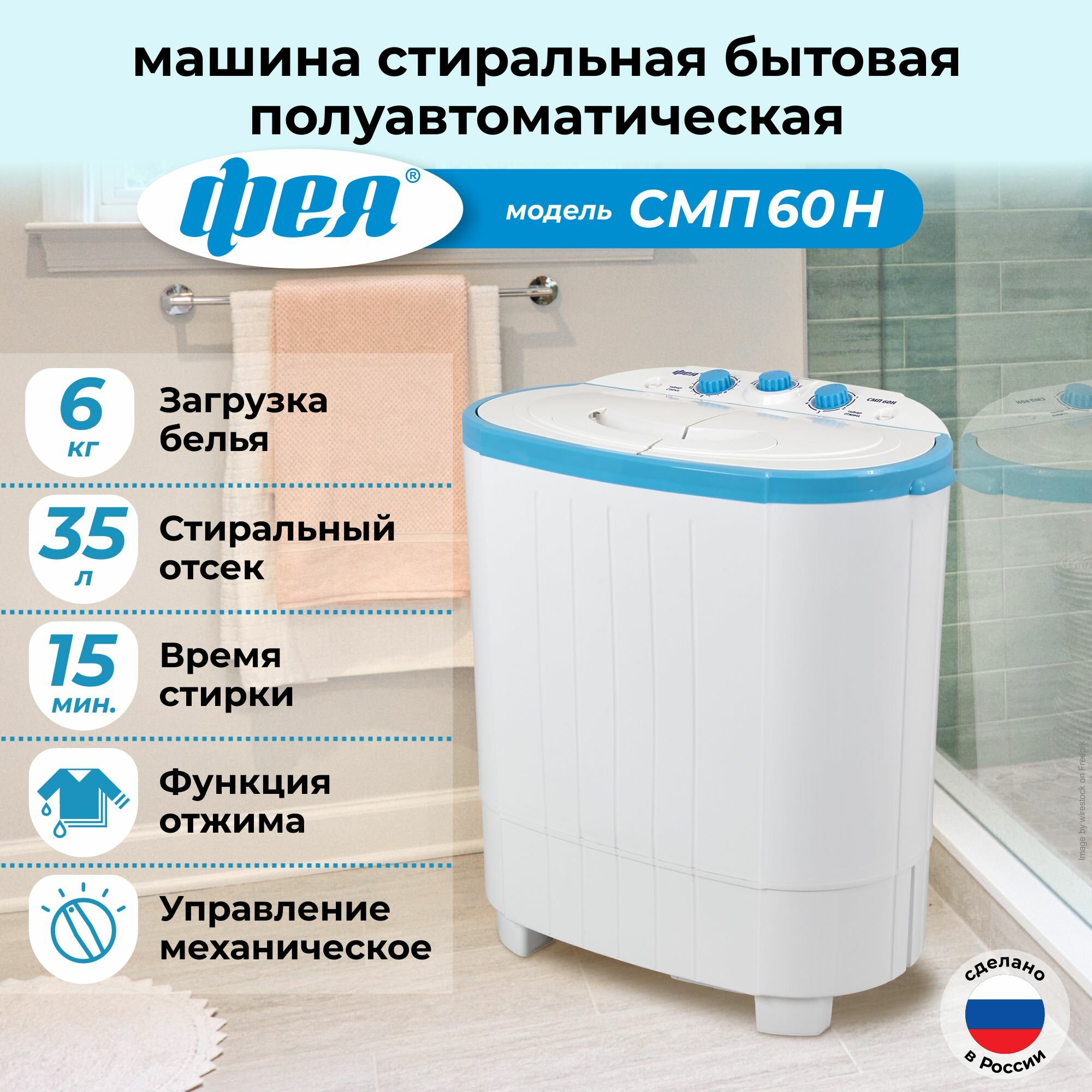 Купить Стиральная машина полуавтоматическая «Фея» СМП 60 Н белый-голубой с доставкой по всей России. Стиральная машина полуавтоматическая «Фея» СМП 60 Н белый-голубой: сравнение цен, характеристики, фото, актуальное наличие и цены.