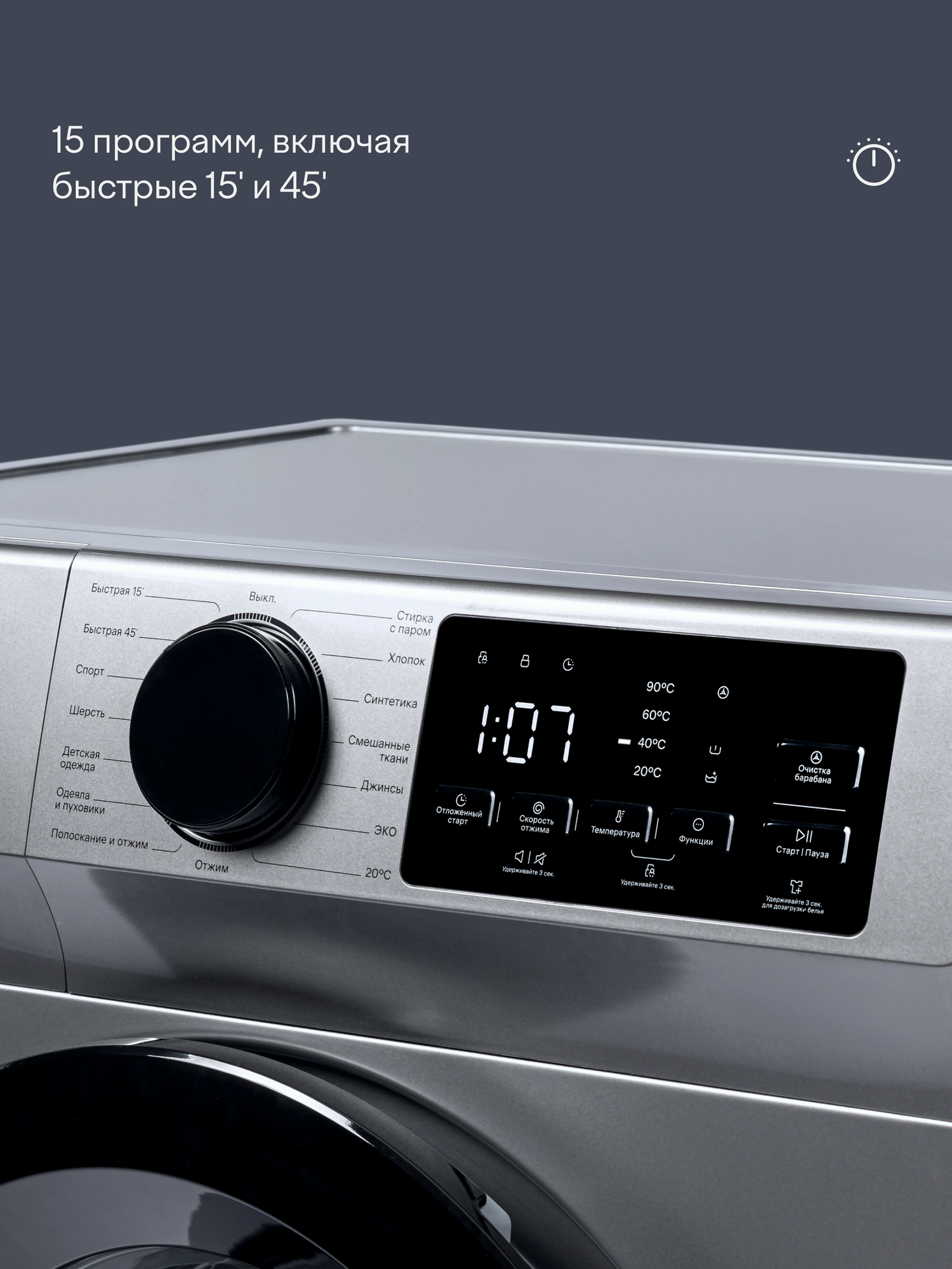 | Количество программ стирки | 15 |