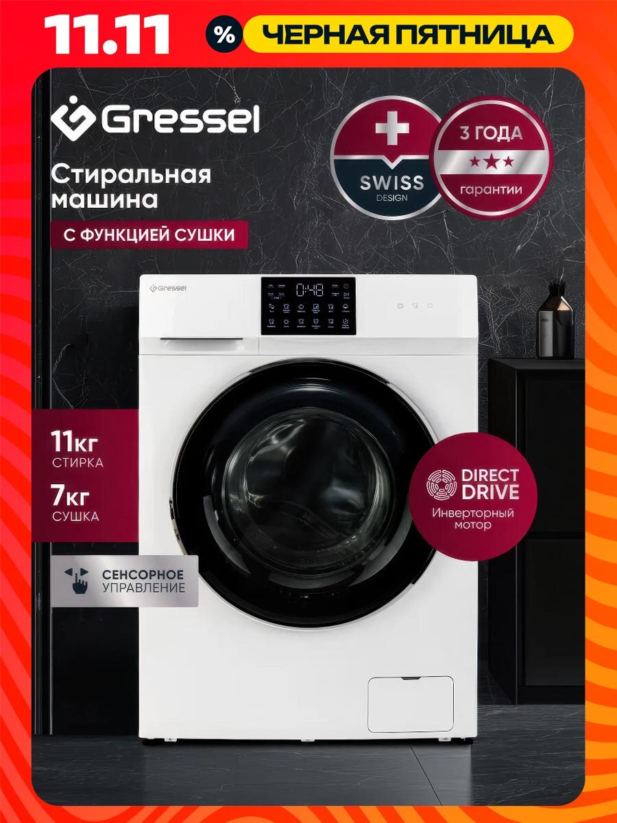Стиральная машина с сушкой Gressel USS602 (11 кг) инверторный мотор с прямым приводом 1200 оборотов: сравнение цен, характеристики, фото, актуальное наличие и цены.