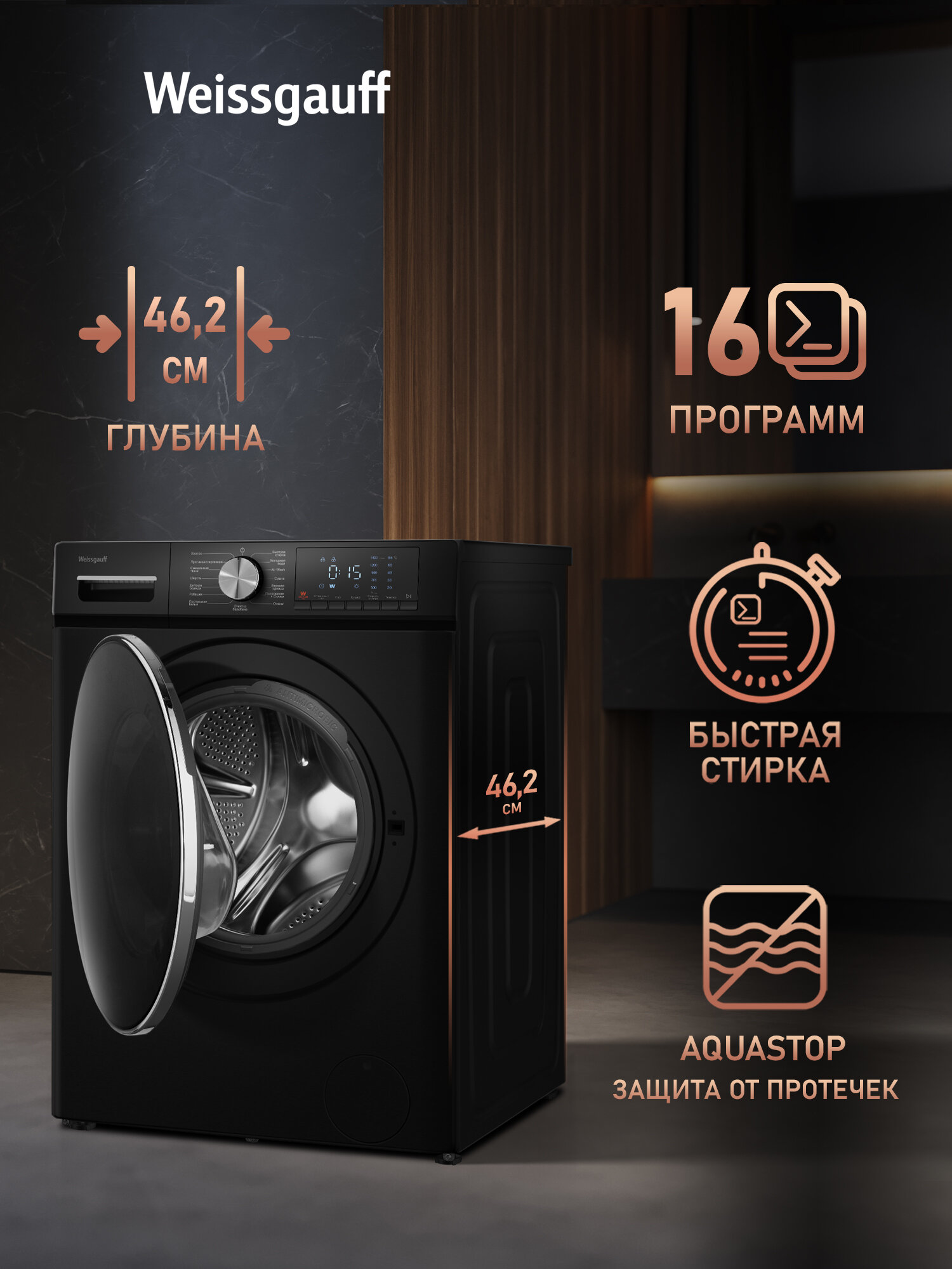 Чувствительное электронное управление - это настоящая гордость Weissgauff, ведь оно реагирует на все ваши команды с первого прикосновения.
