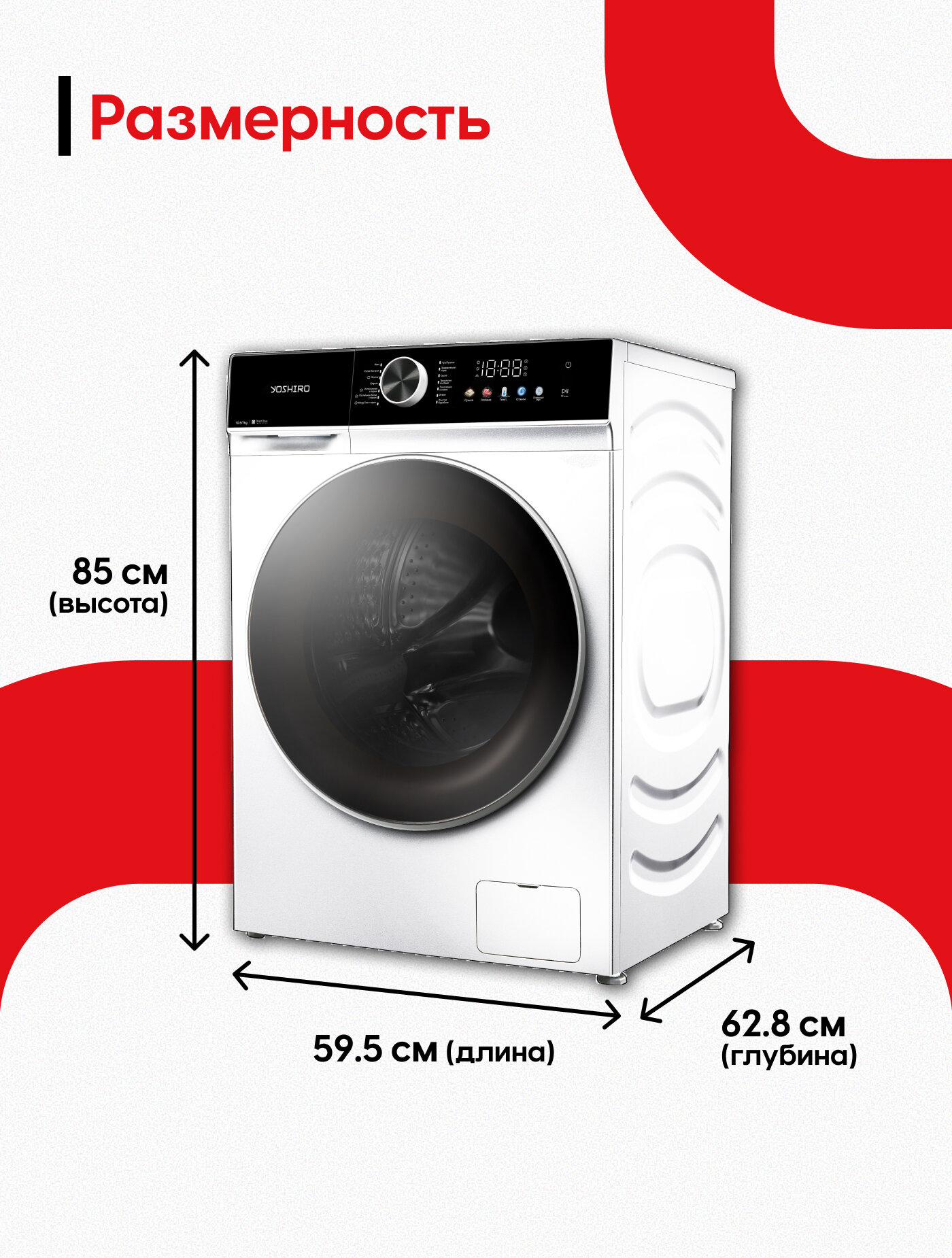 Стиральная машина с сушкой YOSHIRO YWD-F107B24, фронтальная, сенсорное управление, 10 кг: сравнение цен, характеристики, фото, актуальное наличие и цены.