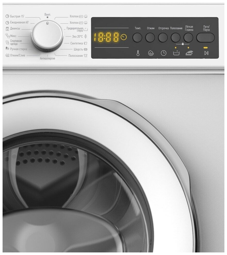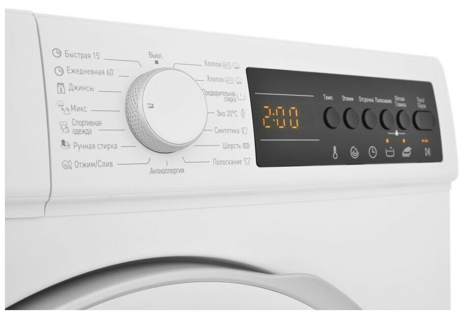 | Программы | быстрая стирка, дополнительное полоскание, ежедневная стирка, отжим, полоскание, предварительная стирка, стирка деликатных тканей, стирка джинсов, стирка синтетики, стирка смешанных тканей, стирка спортивной одежды, стирка хлопка, стирка шерсти |