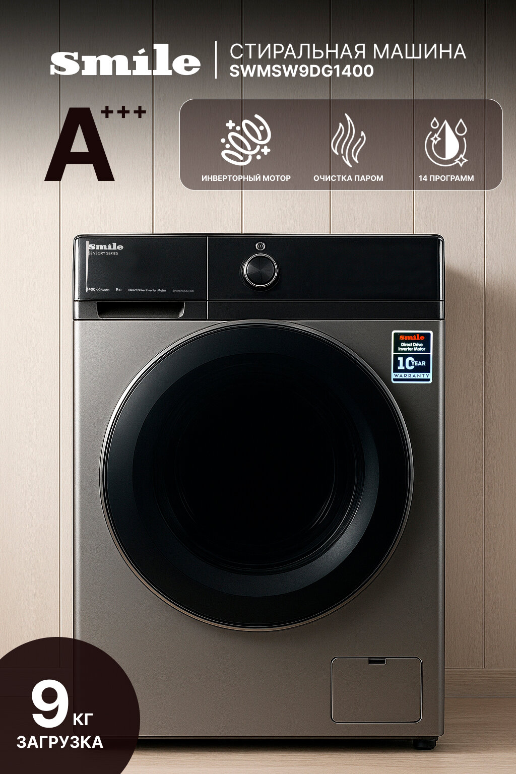 Купить Стиральная машина SMILE SWMSW9DG1400 графит/черный (DD, пар, инвертор) с доставкой по всей России. Стиральная машина SMILE SWMSW9DG1400 графит/черный (DD, пар, инвертор): сравнение цен, характеристики, фото, актуальное наличие и цены.