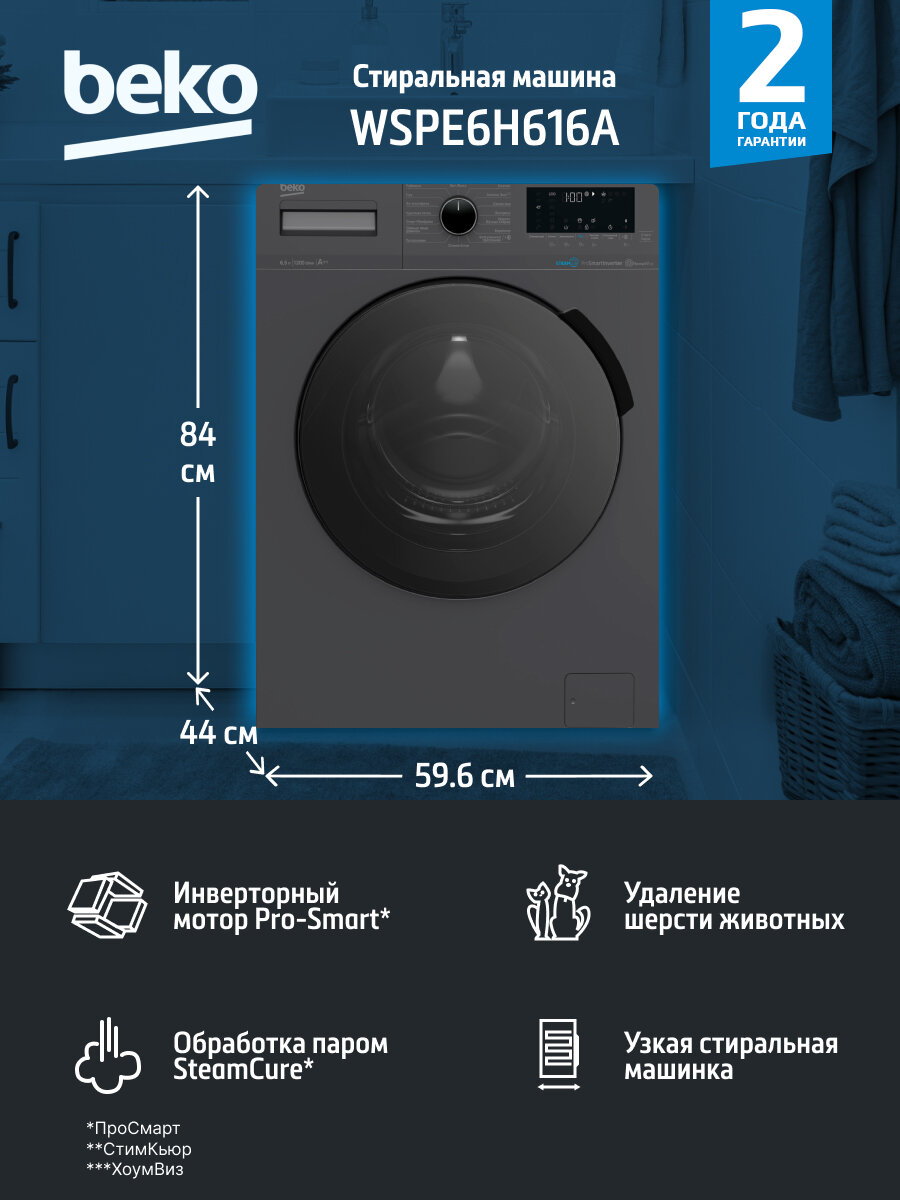Стиральная машина Beko WSPE6H616A 6,5 кг, черный: сравнение цен, характеристики, фото, актуальное наличие и цены.
