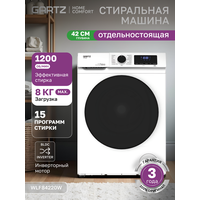 Купить Стиральная машина узкая GARTZ WLF84220W Home comfort, 42 см глубина, 8 кг, 1200 об/мин, 15 программ, отсрочка старта, быстрая стирка, инверторный двигатель, защита от протечек, белая с доставкой по всей России.