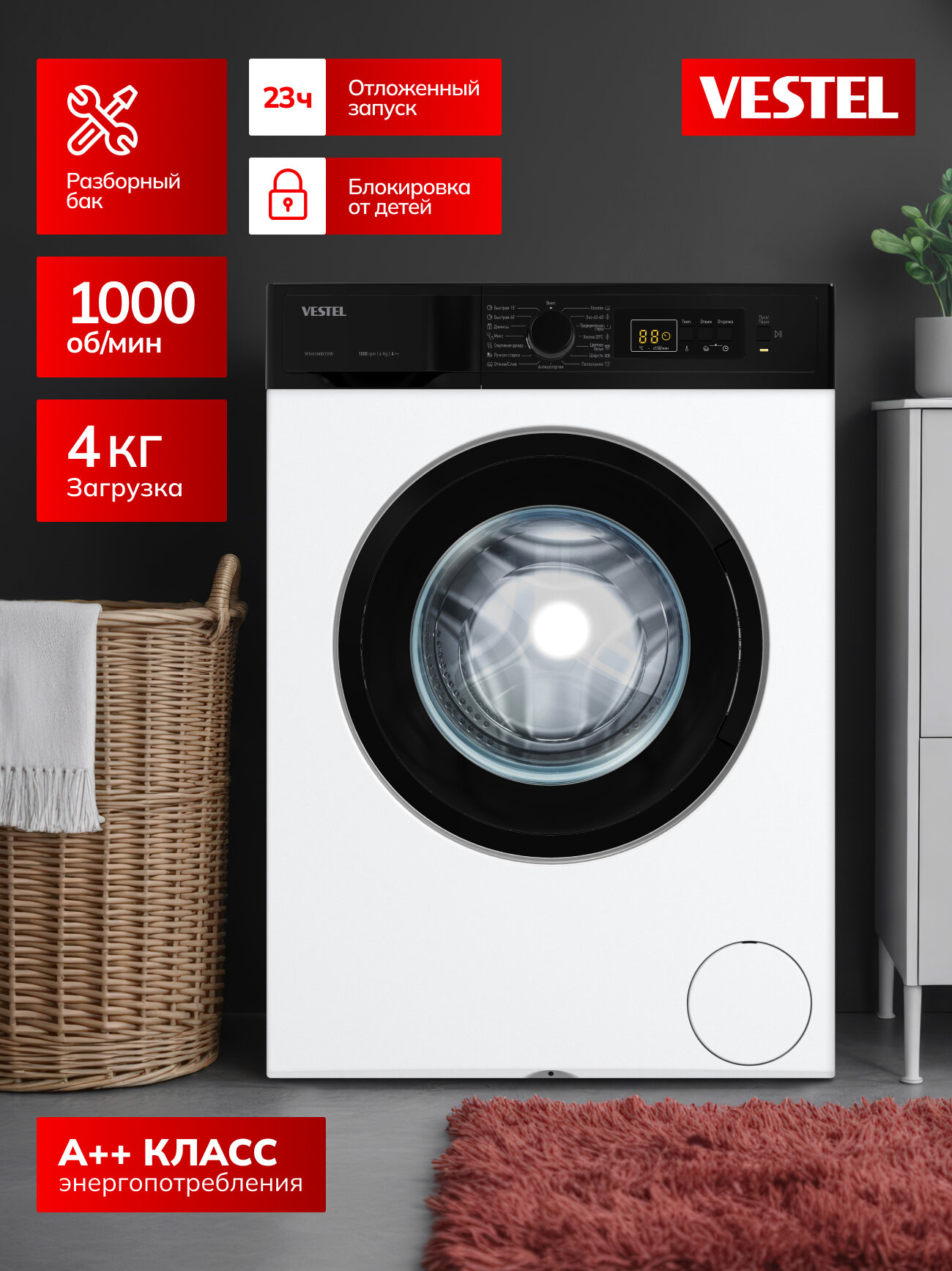 | Программы | быстрая стирка, гипоаллергенная стирка, дополнительное полоскание, ежедневная стирка, интенсивная стирка, отжим, полоскание, предварительная стирка, ручная стирка, стирка деликатных тканей, стирка детских вещей, стирка джинсов, стирка паром, стирка пуховых вещей, стирка синтетики, стирка смешанных тканей, стирка спортивной одежды, стирка хлопка, стирка цветных вещей, стирка шерсти, экономичная программа |