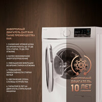 Technologic Motor BLDC; 10 лет гарантии на инверторный двигатель; диаметр барабана 51 см; длина шланга отвода воды 1,5 м длина шланга подачи воды 1 м; максимальная температура 90 С; тип вилки евро; глубина Slim 40 см