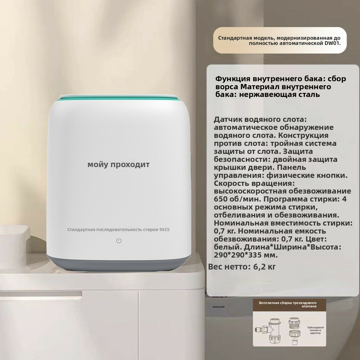 | Программы | ежедневная стирка, интенсивная стирка |