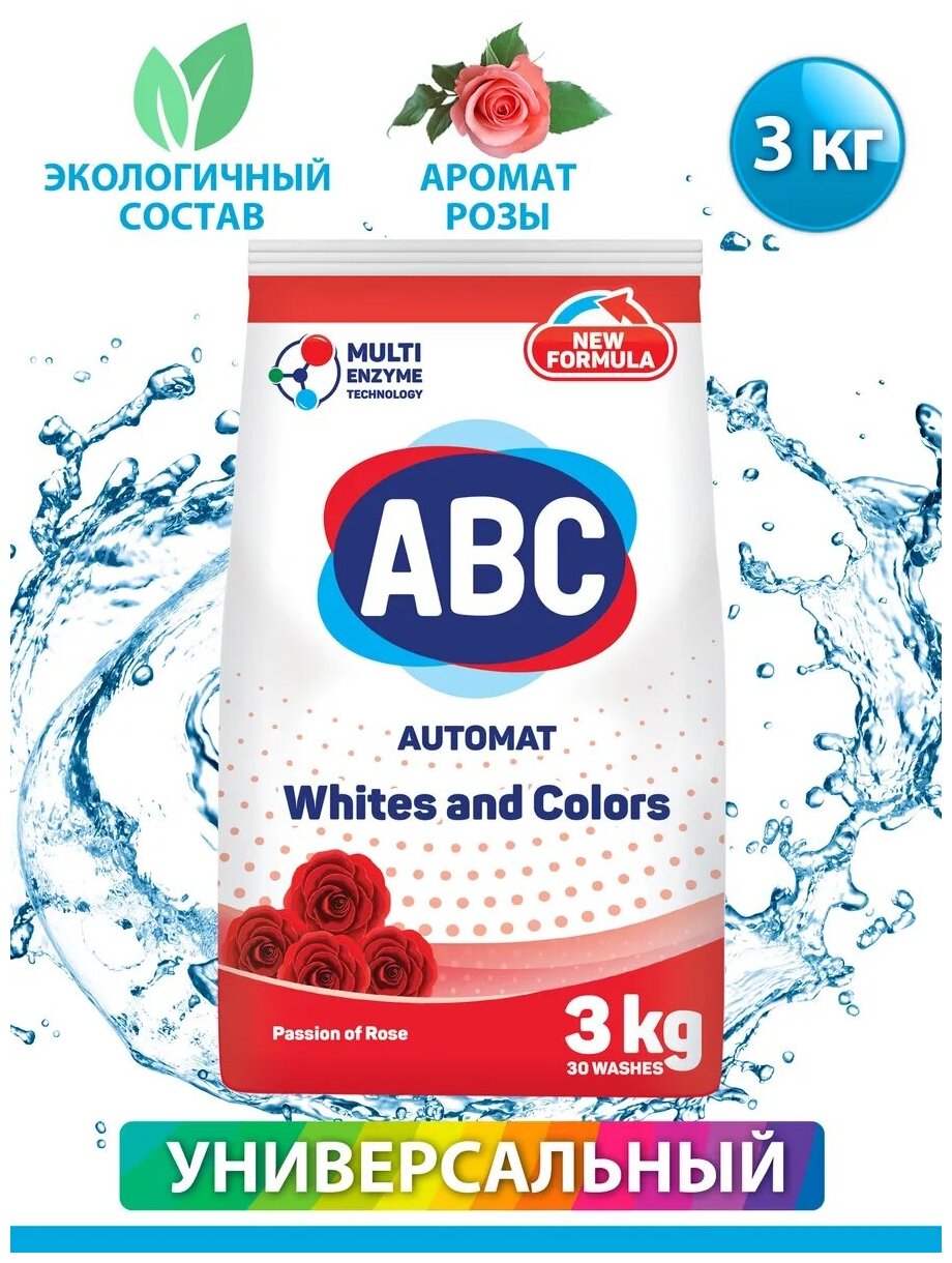 Стиральный порошок АВС предназначен для стирки белого белья , удаляет стойкие загрязнения, аромат свежести , защита волокон