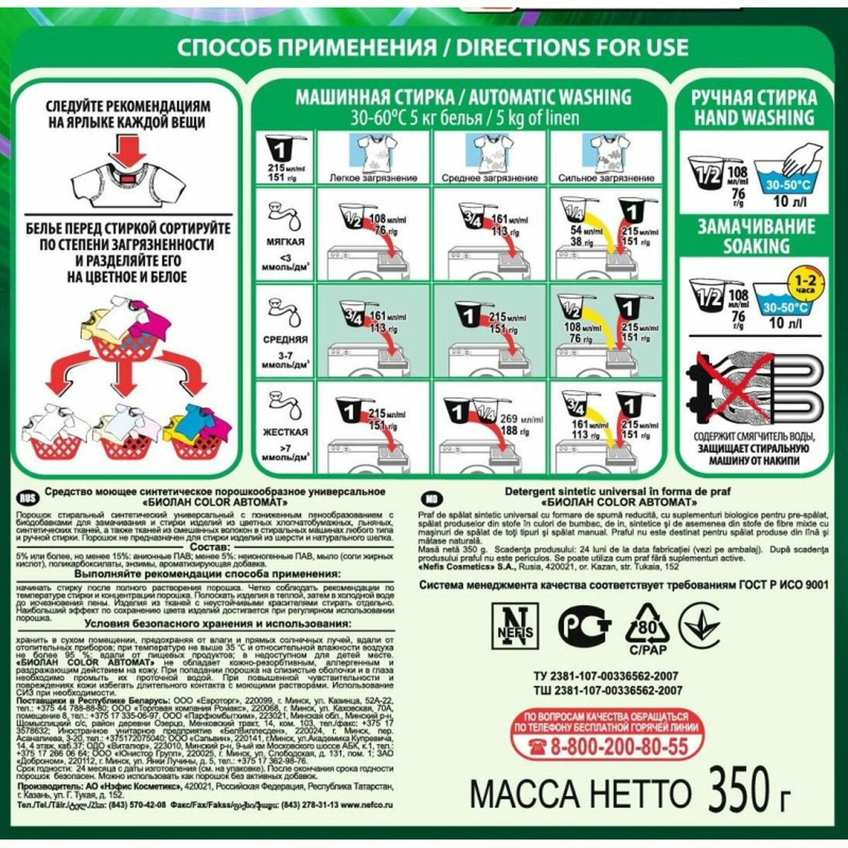Купить Стиральный порошок-автомат Биолан Color, 350г, 24шт. с доставкой по всей России. Стиральный порошок-автомат Биолан Color, 350г, 24шт.: сравнение цен, характеристики, фото, актуальное наличие и цены.