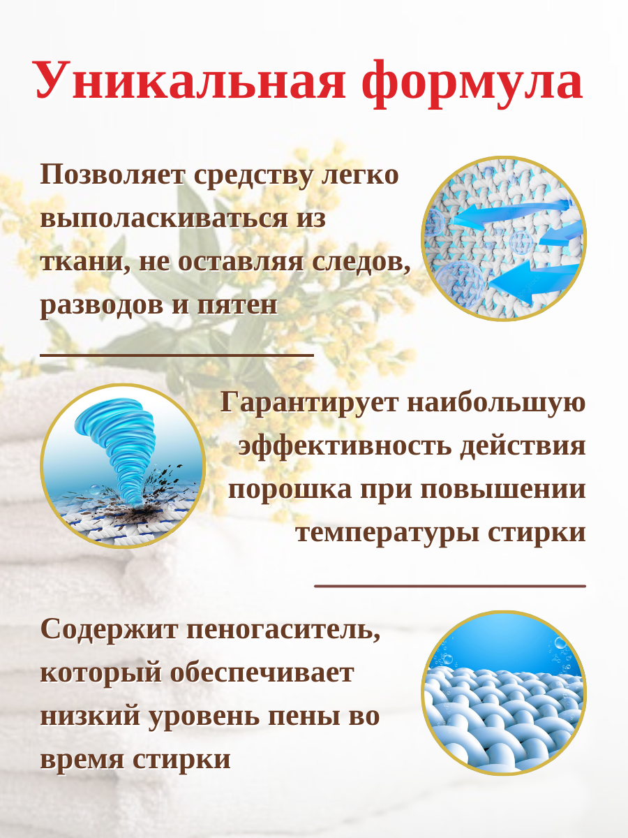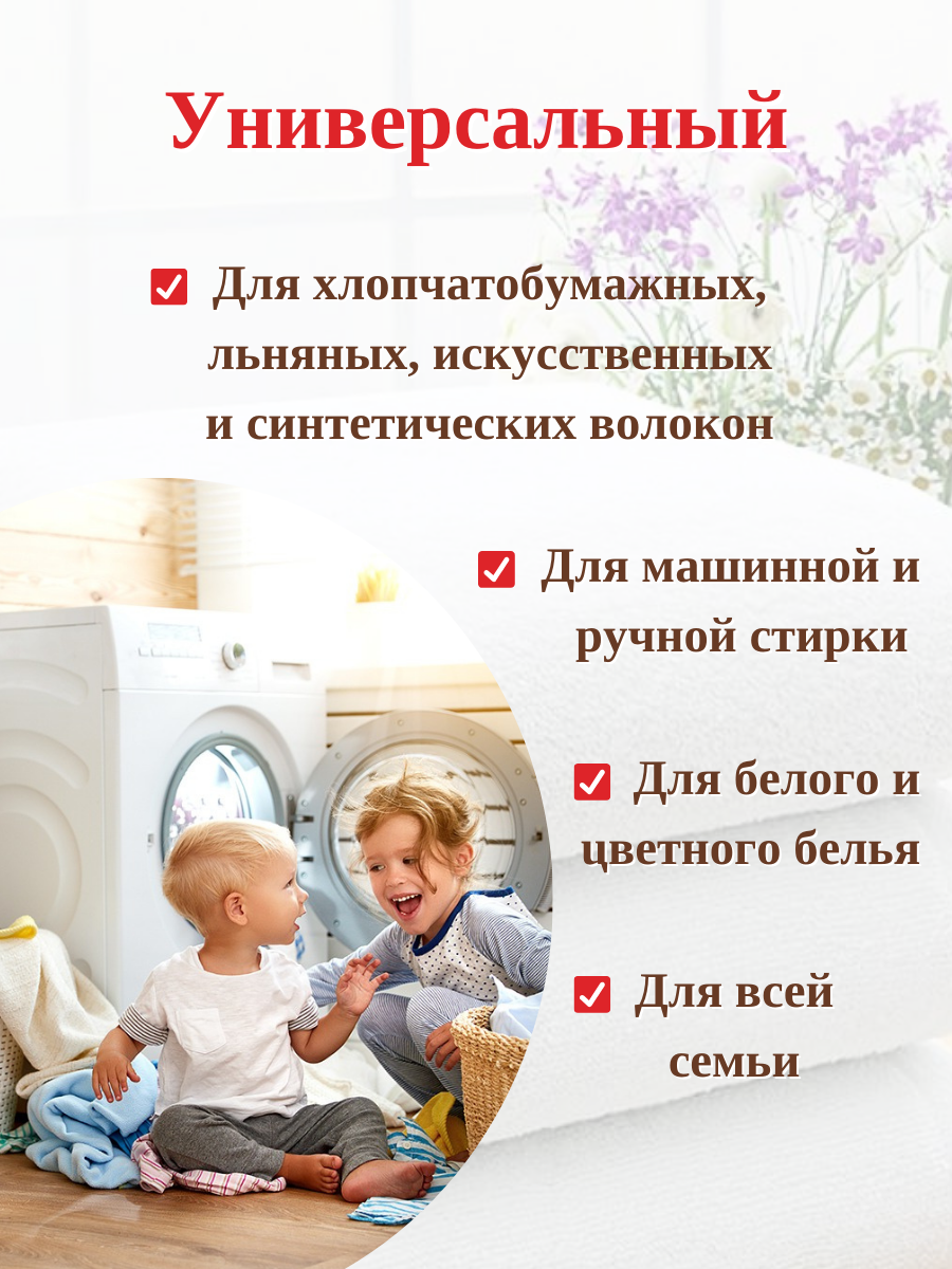 Белорусский стиральный порошок OPTIM universal предназначен для замачивания и стирки изделий из хлопчатобумажных, льняных, синтетических тканей, а также тканей из смешанных волокон. Порошок имеет пониженное пенообразование, удаляет самые сложные пятна, не разрушая структуру ваших любимых вещей, даже после многократных стирок. Для сильно загрязненных вещей, может потребоваться несколько циклов стирки, с предварительным замачиванием. Температурный режим при стирке от плюс 40°С до 95°С, чем выше температура стирки, тем эффективнее действие порошка. Порошок для стирки автомат НЕ содержит в своем составе: агрессивных химических элементов, фосфатов, хлора и катионных ПАВ. Порошок стиральный может использоваться для стирки изделий на предприятиях промышленного комплекса, в том числе на предприятиях пищевой промышленности, в организациях здравоохранения и других сферах. Универсальный стиральный порошок подходит для стирки в стиральных машинах, всех типов и для ручной стирки. Порошок для стирки полностью выполаскивается из ткани, при ежедневном использовании не пересушивает кожу. После стирки вы получаете чистое и мягкое белье, без применения кондиционера. Соблюдая указания по применению средства, можно достичь великолепного результата стирки.