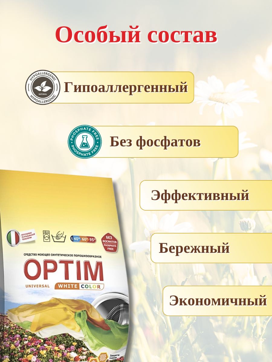 Купить Стиральный порошок автомат для всей семьи Optim Universal 6 кг с доставкой по всей России. Стиральный порошок автомат для всей семьи Optim Universal 6 кг: сравнение цен, характеристики, фото, актуальное наличие и цены.