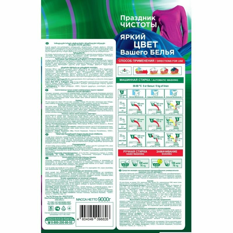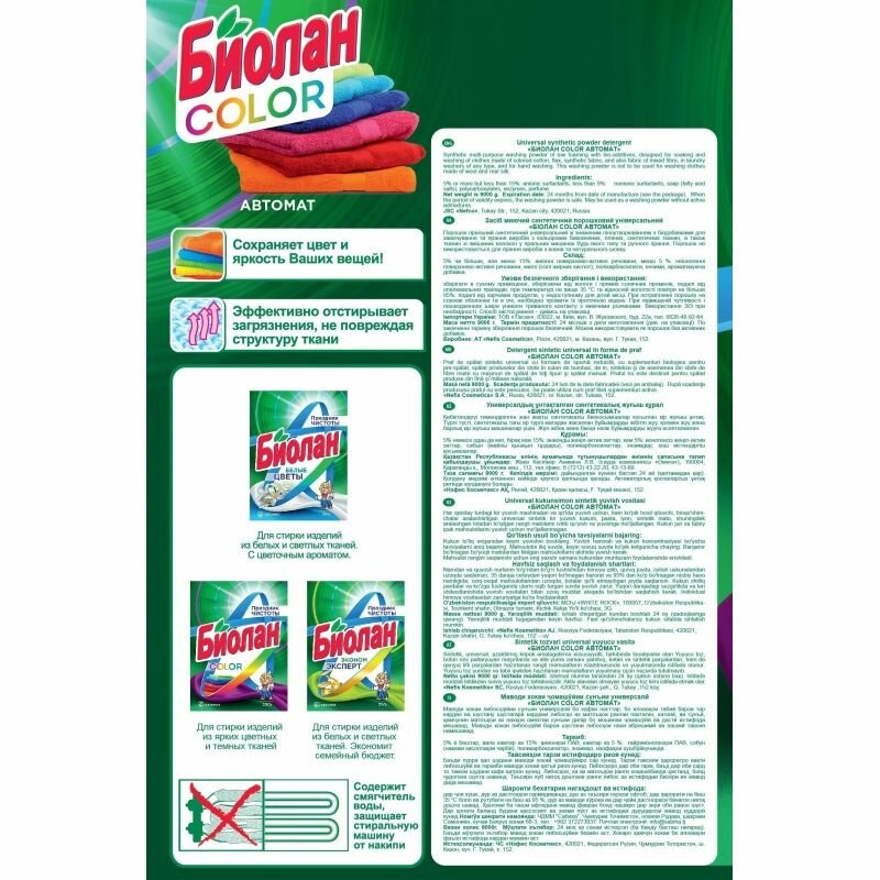 Стиральный порошок Биолан Автомат, «Color», для цветных вещей, 9 кг (759-4): сравнение цен, характеристики, фото, актуальное наличие и цены.