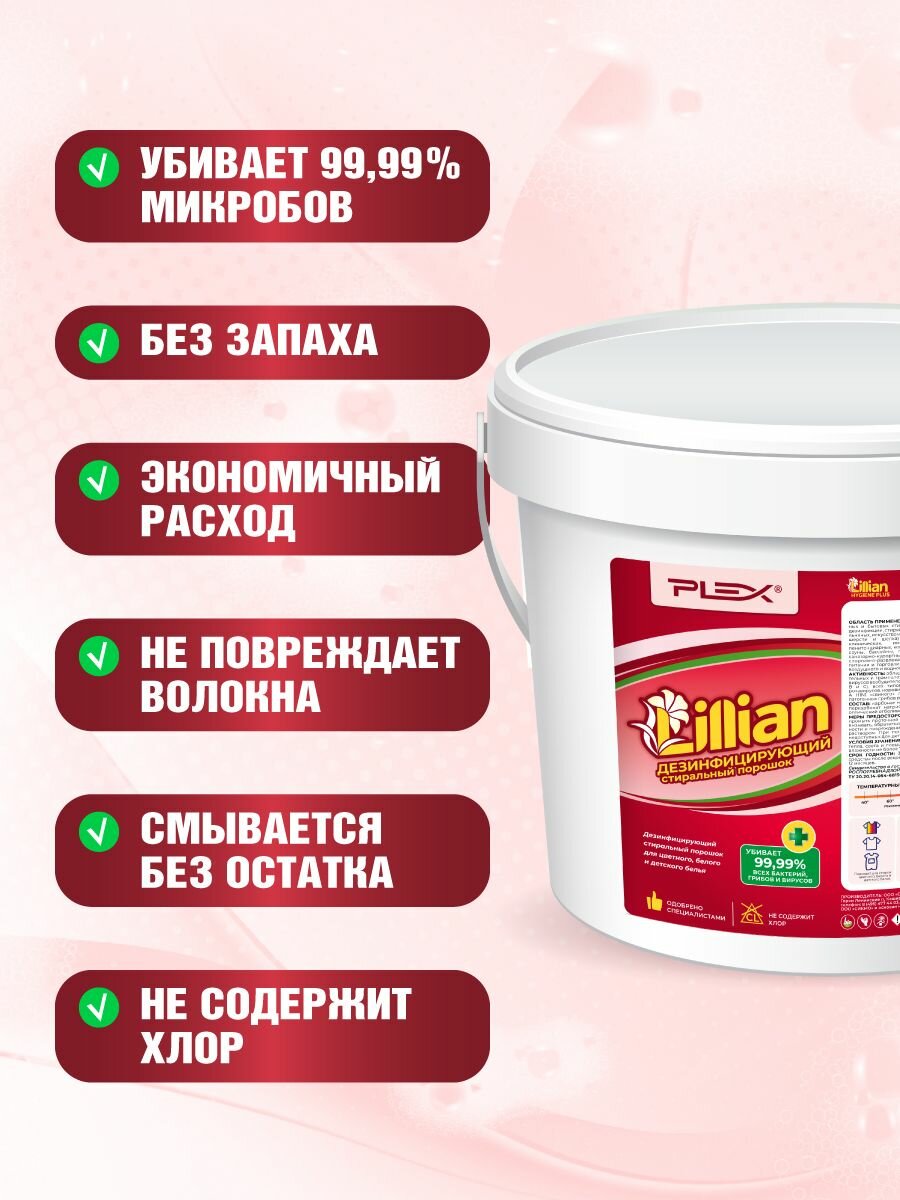 Купить Стиральный порошок дезинфицирующий для цветного, белого и детского белья PLEX Lillian 5 кг (110 стирок) с доставкой по всей России. Стиральный порошок дезинфицирующий для цветного, белого и детского белья PLEX Lillian 5 кг (110 стирок): сравнение цен, характеристики, фото, актуальное наличие и цены.