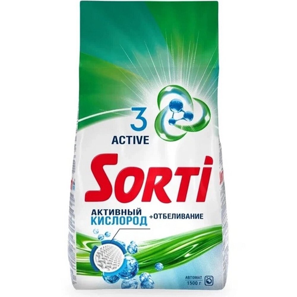 Стиральный порошок Sorti, Активный кислород, антибактериальный, 1500 г, 3 шт: сравнение цен, характеристики, фото, актуальное наличие и цены.