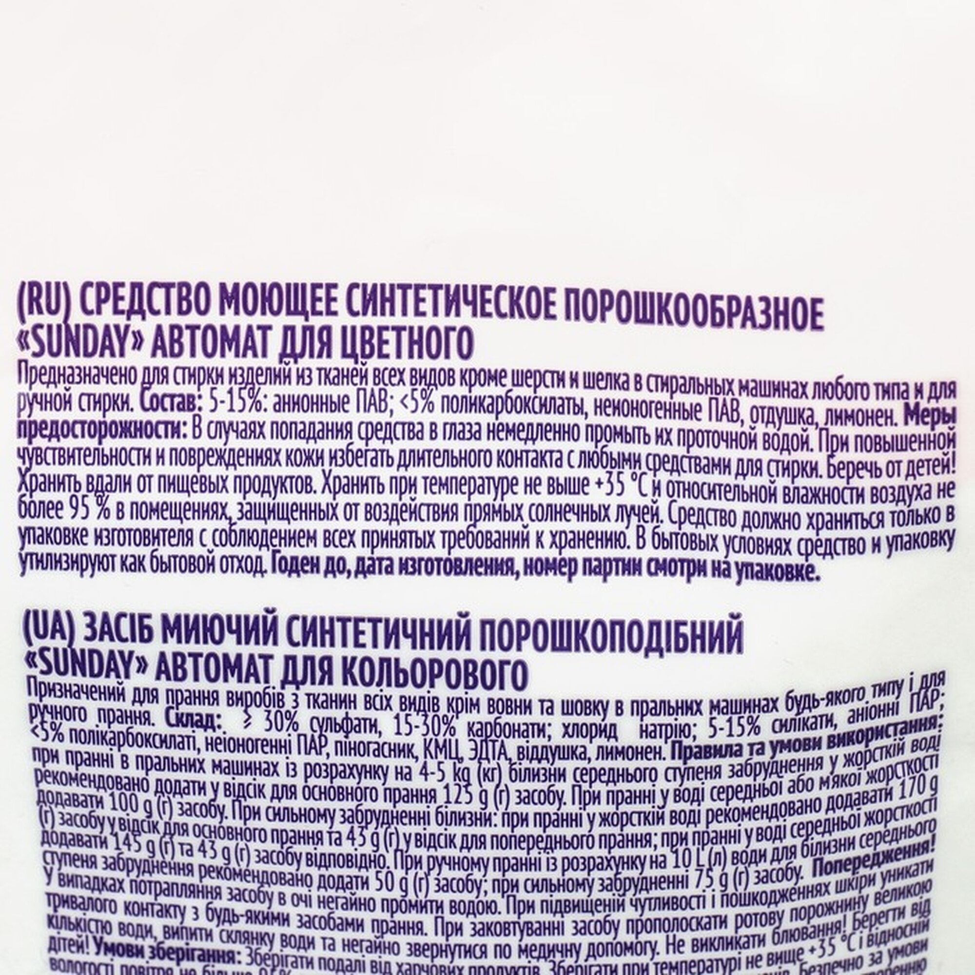 Стиральный порошок Sunday для автоматической стирки цветного, 15 кг: сравнение цен, характеристики, фото, актуальное наличие и цены.