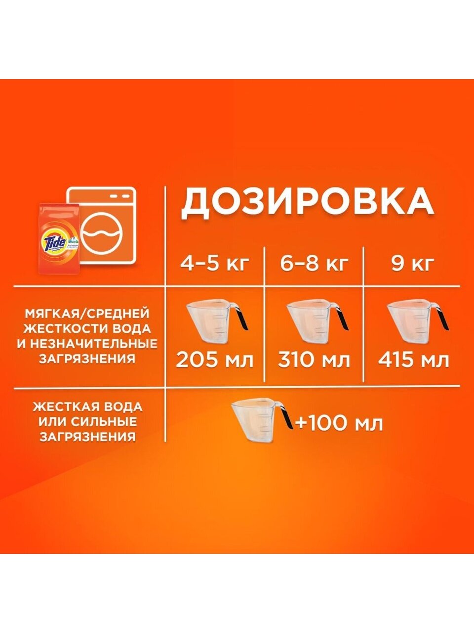 Используйте стиральный порошок Tide для автоматической стирки цветного белья. Добавьте необходимое количество порошка в отсек для моющих средств вашей стиральной машины в соответствии с инструкциями на упаковке. Рекомендуется использовать холодную воду для достижения наилучших результатов и сохранения яркости цветов. Подходит для стирки джинсовых тканей.