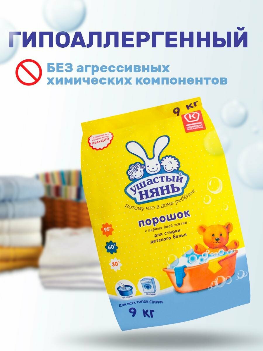 Стиральный порошок Ушастый Нянь, 9кг, гипоаллергенный, для детского белья Оригинал: сравнение цен, характеристики, фото, актуальное наличие и цены.